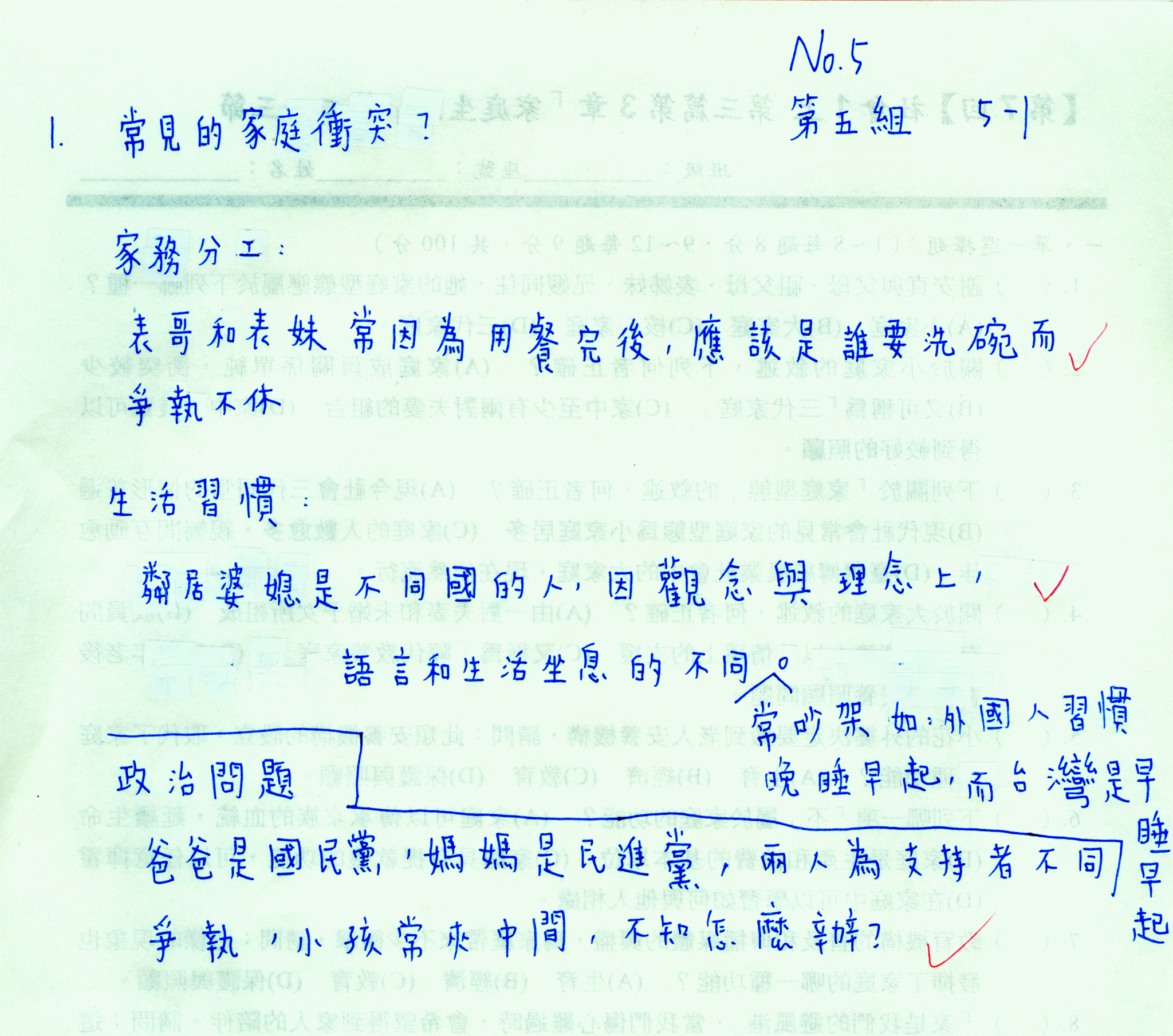 公民七上~家庭協奏曲CH4之課程分享Post author:cs100Post published:2012 年 3 月 30 日Post category:班級活動 / 班級經營CH4 家庭協奏曲 課程簡案分享一年級Ch4教案簡案 一年級Ch4教案簡案 from 曼玉 詹 View more documents from 曼玉 詹班上同學討論實況:常見家庭衝突問題學生答案分享:(點圖可以放大) 面對衝突時,我通常用什麼方式回應:(點圖可以放大) 相關內容聖誕師生交換禮物2012 年 12 月 26 日校慶創意進場_防愛滋2013 年 11 月 15 日莫忘初衷2013 年 11 月 19 日