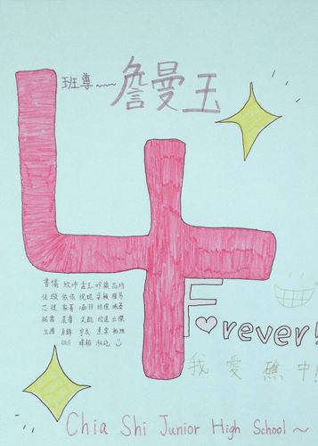 導師後記:我喜歡小孩如此自由揮灑其想法!完成此班服讓我欣喜好幾陣子,也自我肯定自己一下,我要的小孩是可以獨立思考與有想法的。他們「皮」,但「可愛」!開心的過著每天學校生活,我交待的話,聽了!成績這事就留給慢慢成熟的他們有天感召到時,再去努力吧!