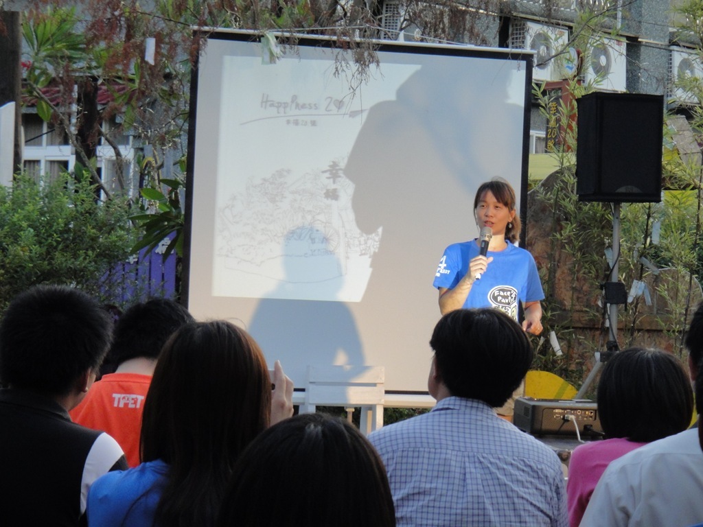 冬山鄉大進村的幸福20號農場,在看過親子天下3月號的報導時,就很想去看看,不過老實說,離家這麼遠,又是17:00-21:00的夜歸時段,如果不是拉著老公開車一遊,我是不可能跨出「冒險」的一步。啊,這好像跟今晚的主題不合!上次參加FaceParty3時,主題鮮明又富創意,是部落格競賽成果發表,覺得每位講者和參與的人,不論台風和書寫、攝影技巧都超棒的,感覺自己好渺小,適合當鼓掌部隊和悶騷粉絲而已。上次FaceParty3那一群超偶3,很多都今天現身迎接超偶4了,我怯生 生,不敢拿名片四處交友,這場子的熱絡,像玩cosplay,要先有文本,知道圈子裡大概的領域,然後勇於推薦自己。怎麼辦,我不是主任、校長、擁有能量的人,實在想躲在暗處欣賞和享受就好,做個推薦喊讚的人。
