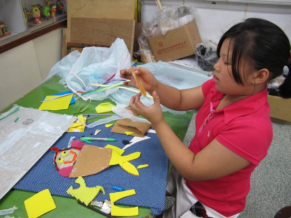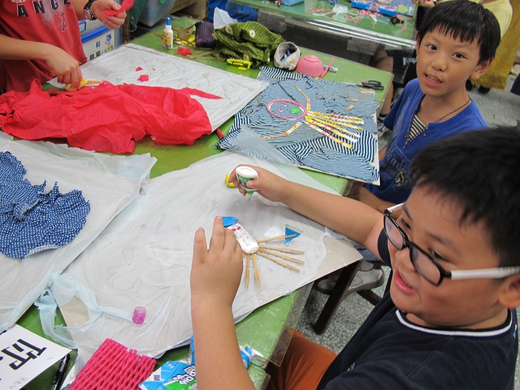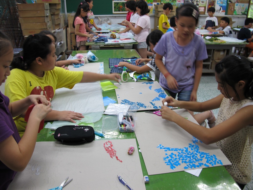 有不想碰廢棄物,用色紙撕貼碎紙表現,也有5週來不斷拿老師又提供的新材質,卻又撕掉之前做好的基礎,材質代表意義、配色和造型都不斷探索,如果藝術是獨特和唯一的表現,精緻雕琢的另一頭極端:隨興和塗鴉,美的定義要鼓勵什麼??想不到要做出層層疊疊的效果,那自信和遊戲的精神,竟不容易!有時孩子不知道甚麼是見好就收,需要老師提醒。[@more@]01020304050607080910