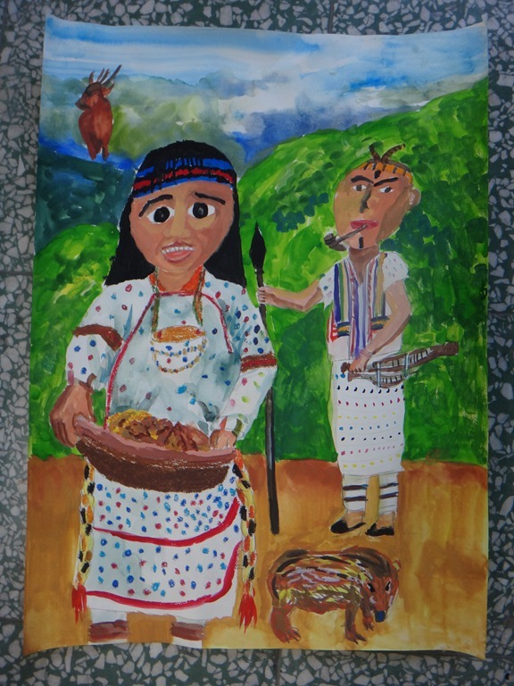 記得以前協助潘昕五年級時參加第一屆原住民兒童繪畫比賽,獲優選獎。這是第六屆,我第二次指導原住民學生,繪畫過程閒聊山上教會和殺豬橋段,發現他們生活的豐富性,在平常課程中忽略、不易連結。