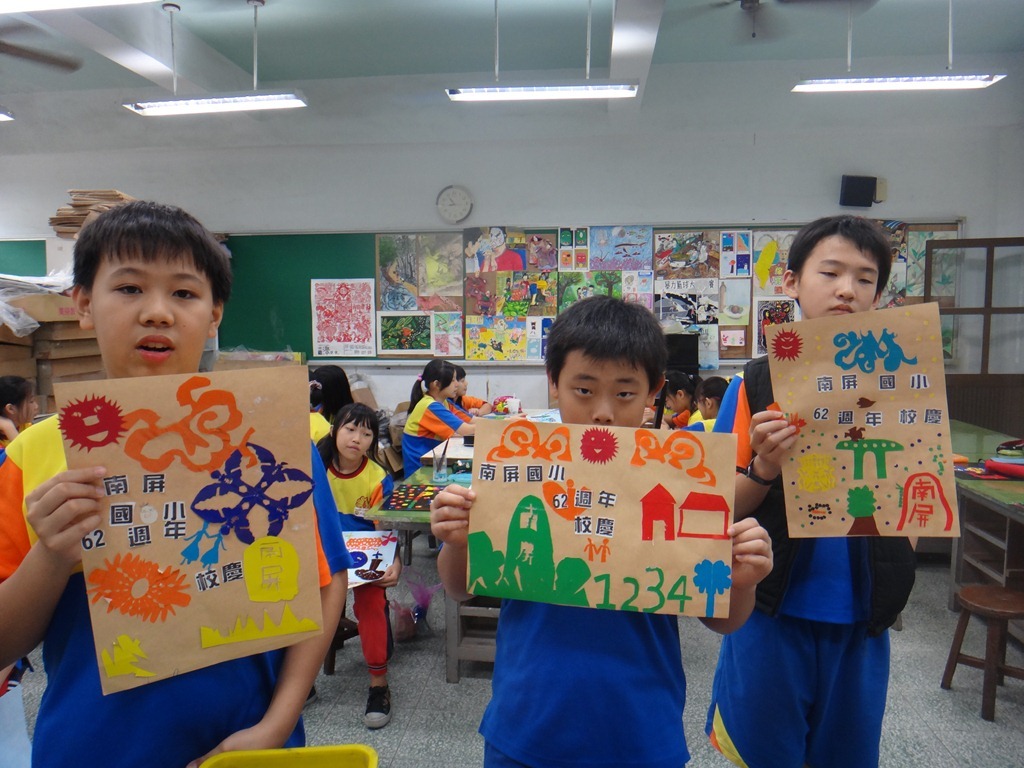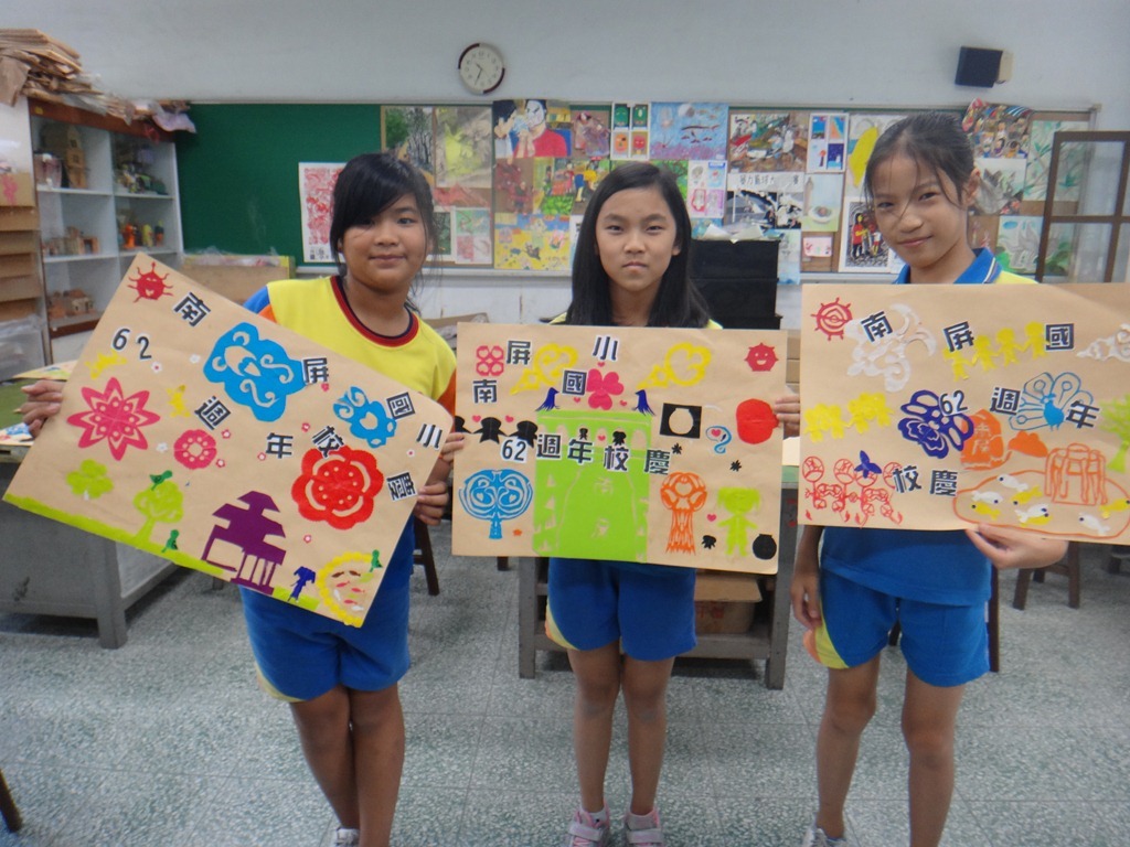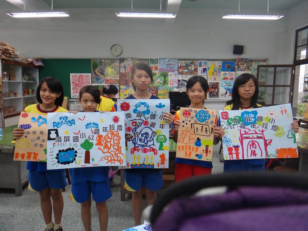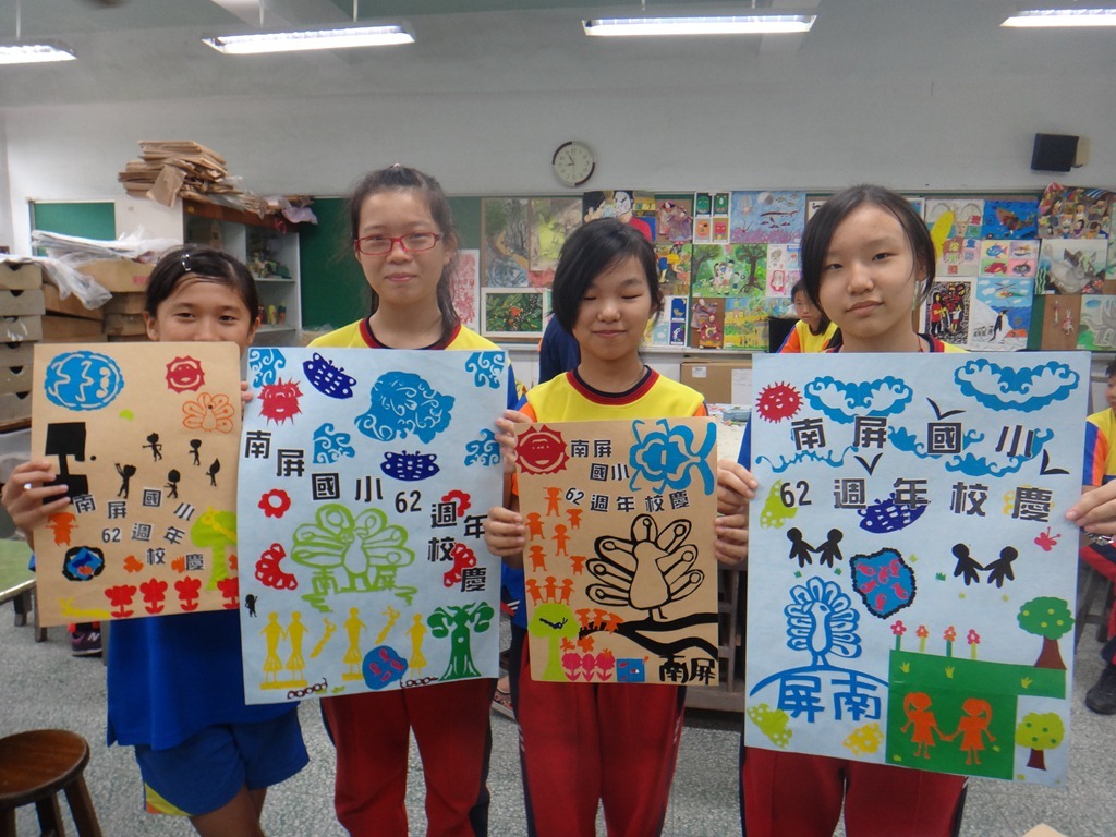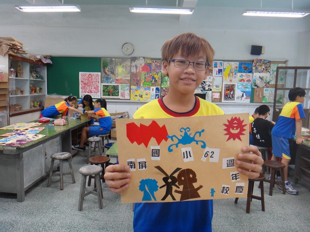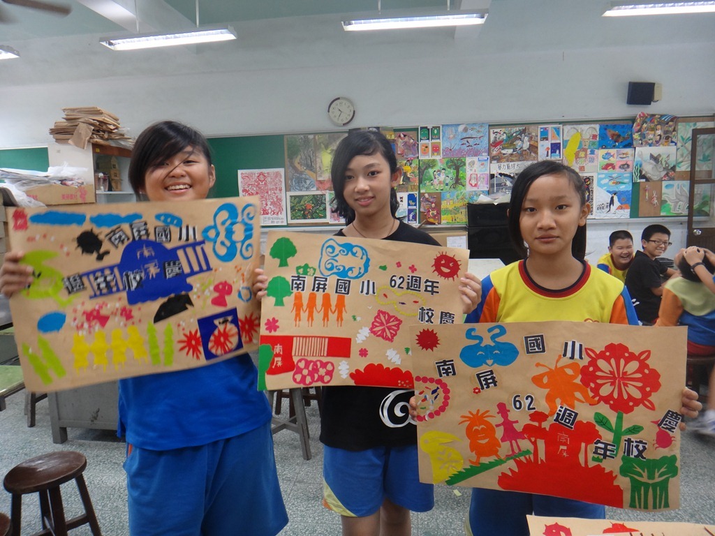 安徒生的剪紙、黃土高原的剪紙、南海藝廊原生植物剪紙的靈感促成這個單元,試上六年級兩班,以太陽、雲、人、樹、花、蝴蝶、南屏校園、蟲、魚、鳥等自創造型剪紙安排海報版面,色紙的大小和顏色要估算一下,四週教學,考驗學生的細膩和耐性。[@more@]