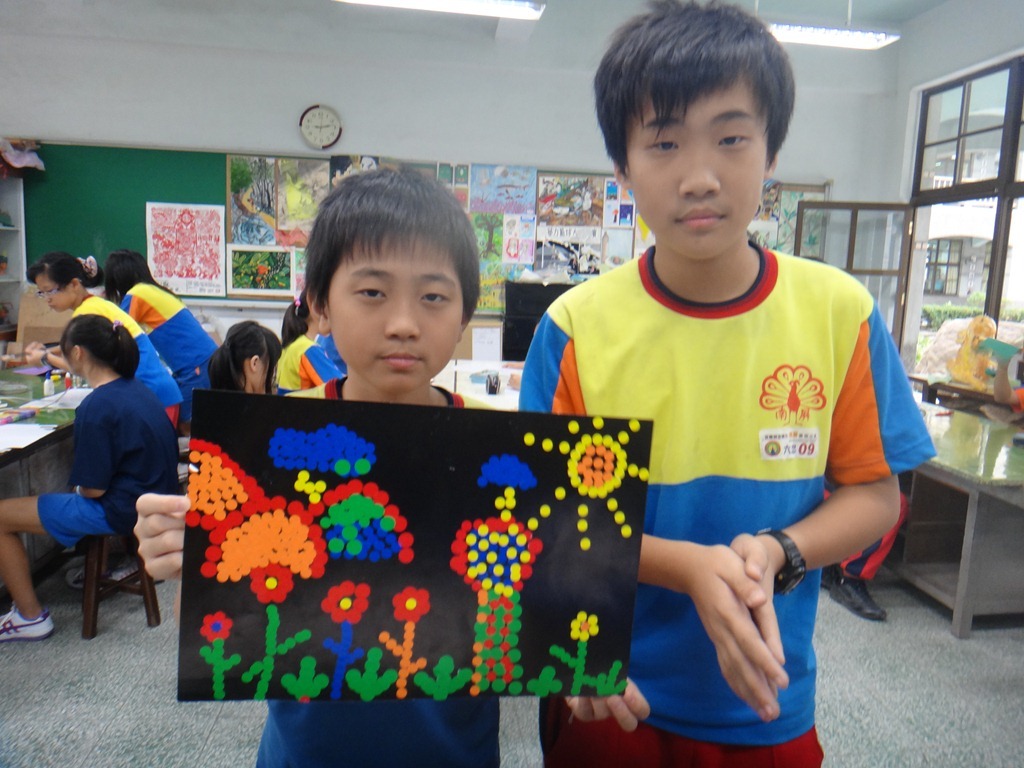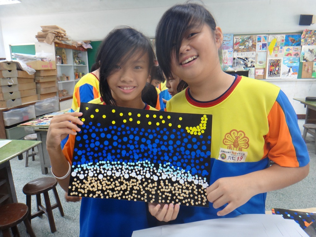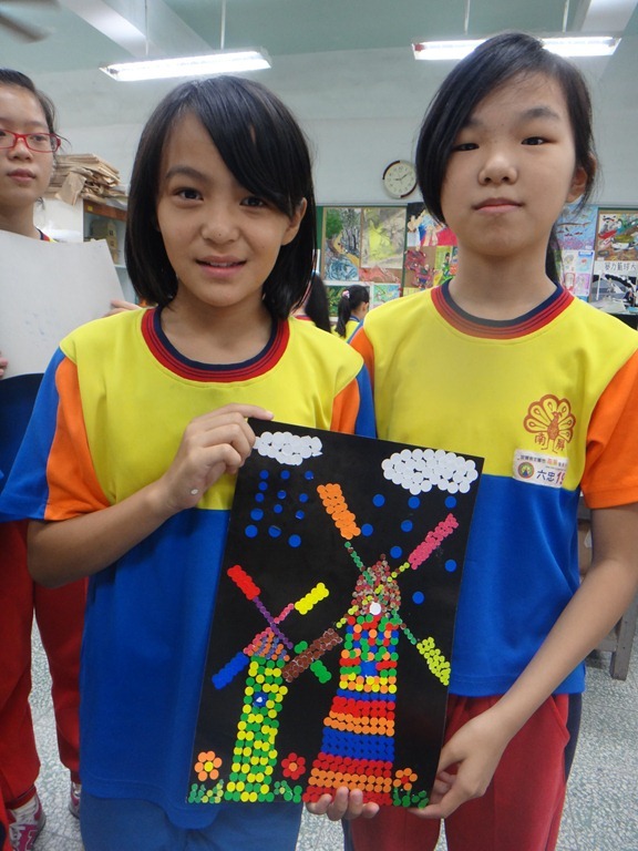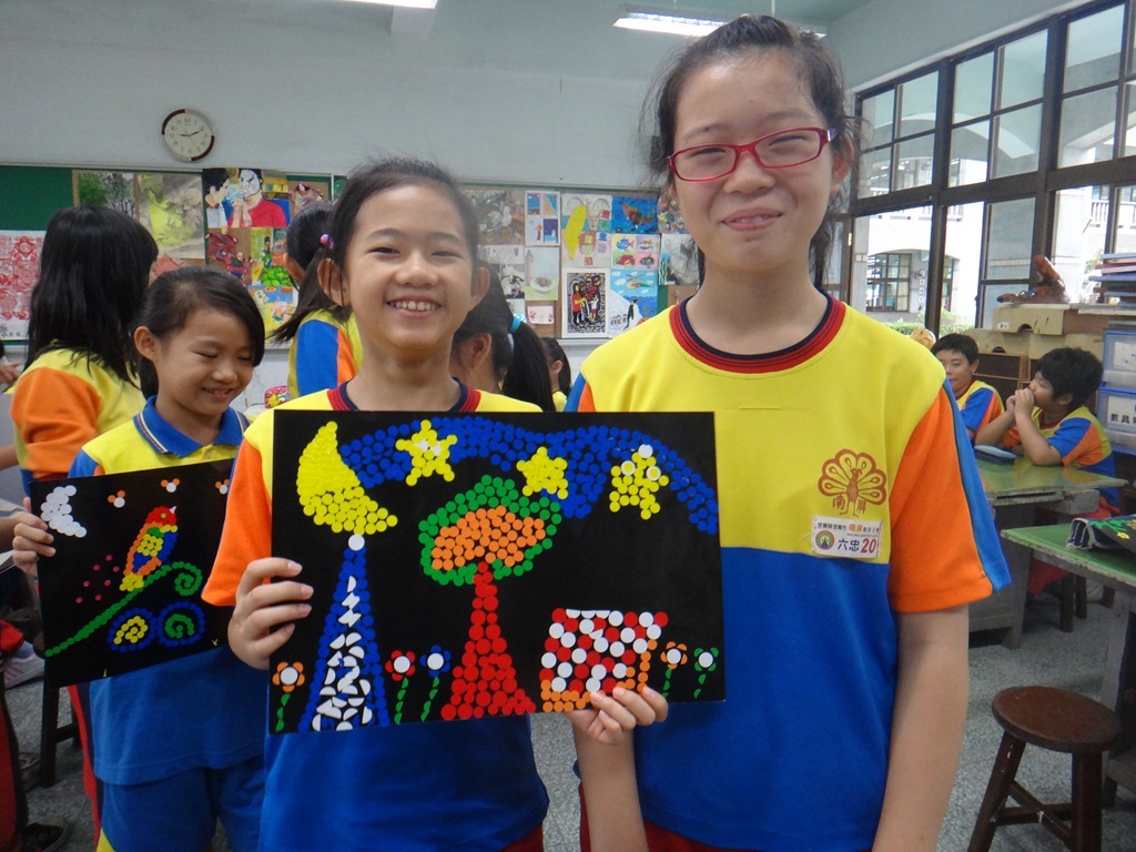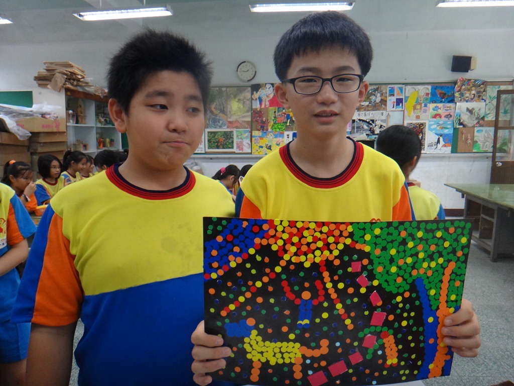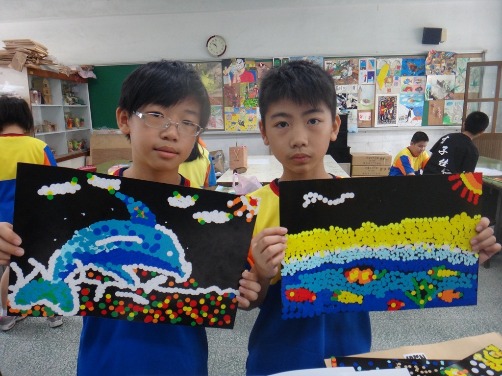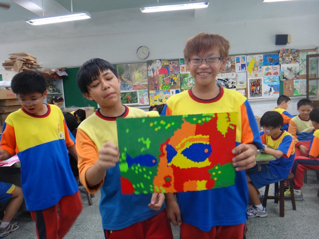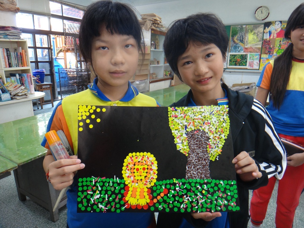 有時候用合作的方式能讓學生比較容易達成教學目標,六年級要做到像印象派追逐光的閃耀,的確不容易!DSC00295[@more@]