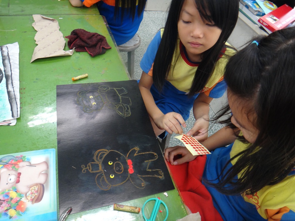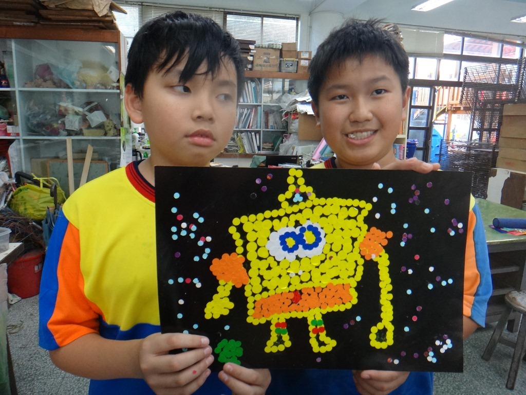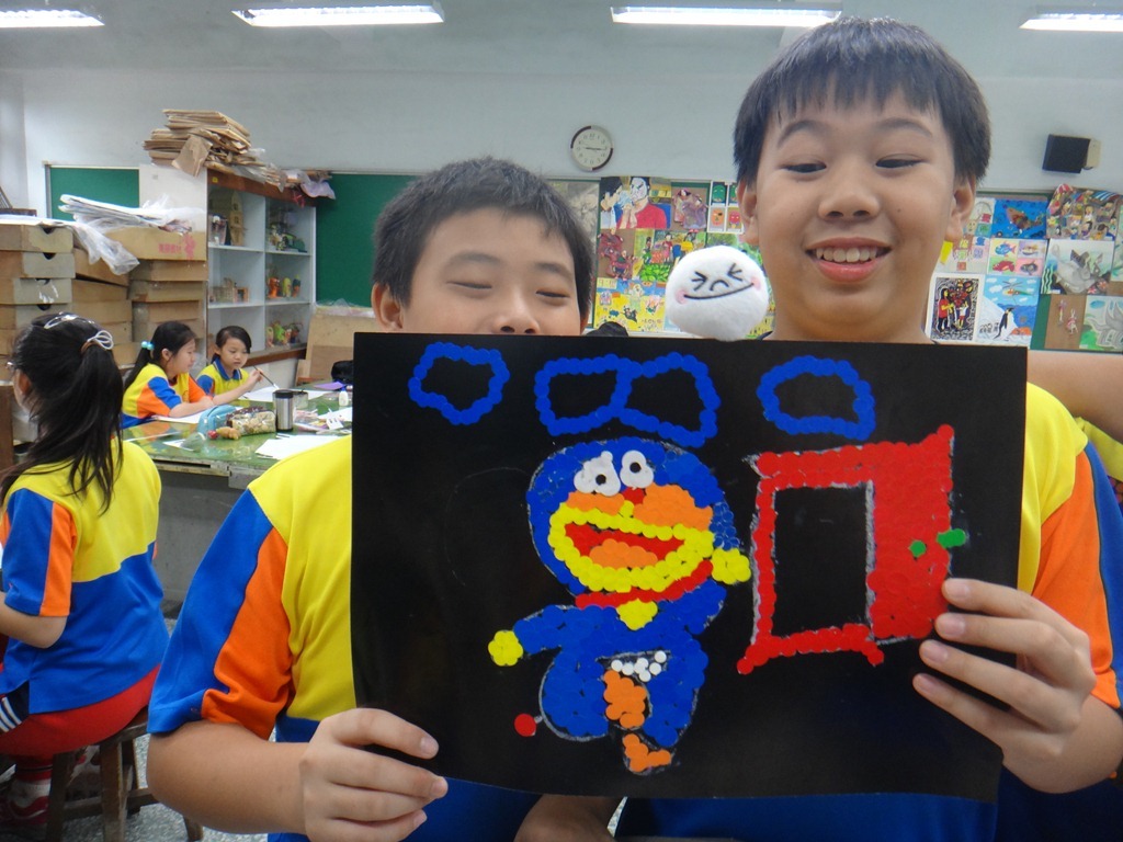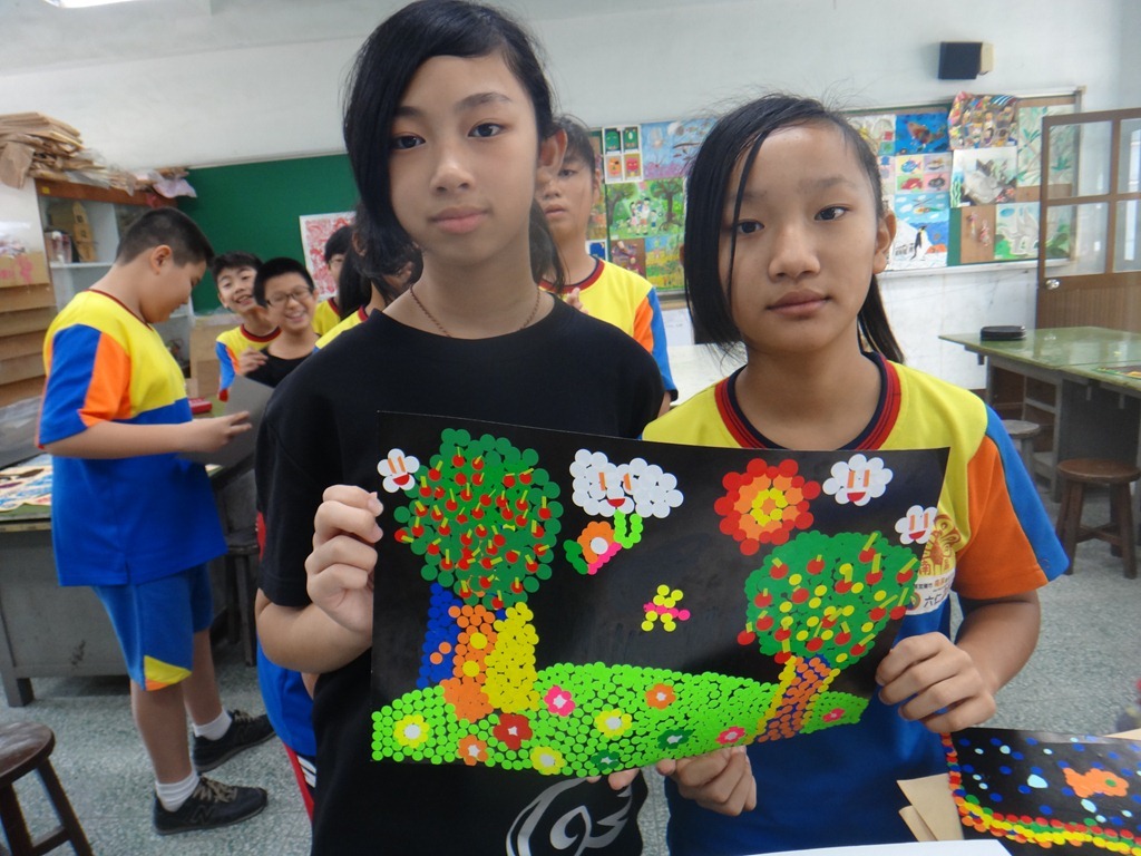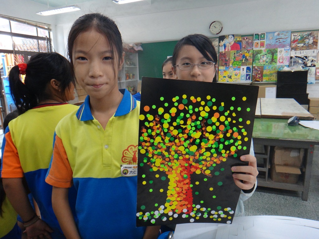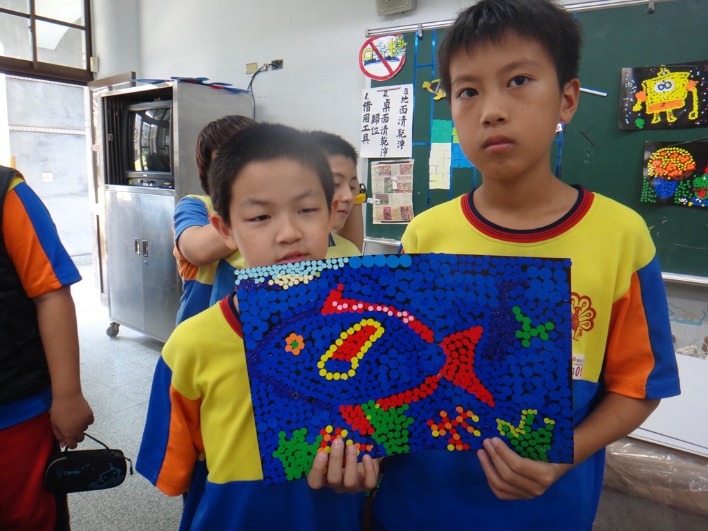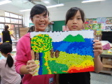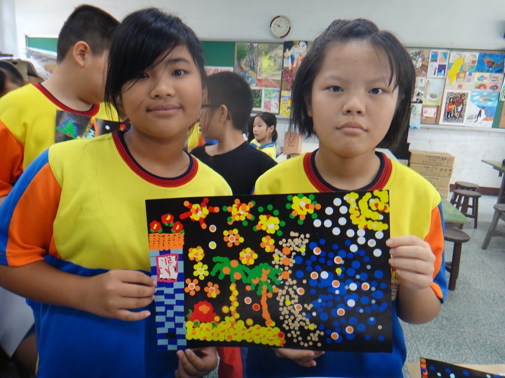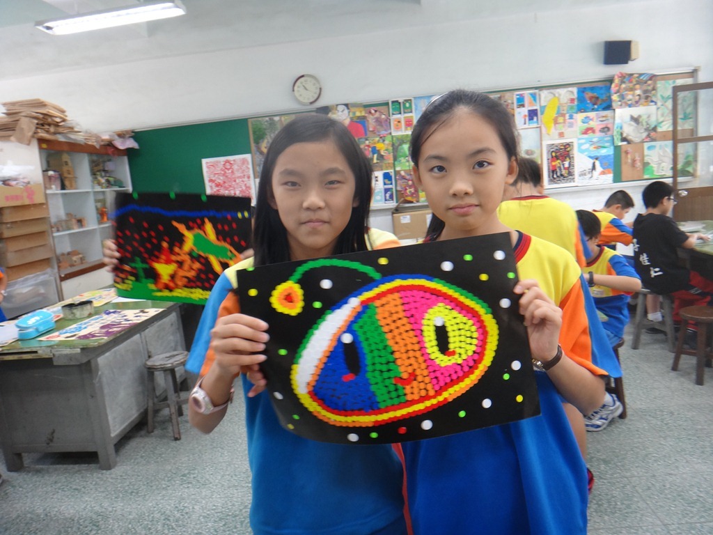 有時候用合作的方式能讓學生比較容易達成教學目標,六年級要做到像印象派追逐光的閃耀,的確不容易!DSC00295[@more@]