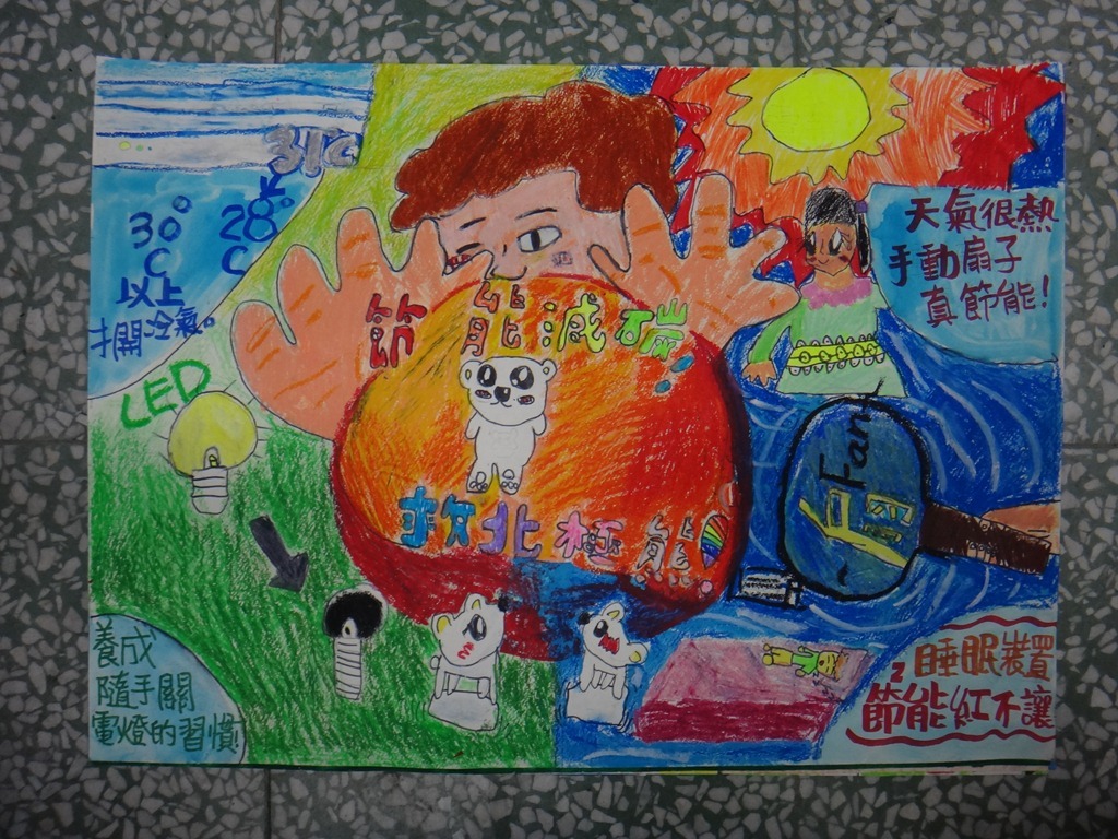 節能減碳,救北極熊,103年1月15日獲知財團法人聖嚴教育基金會101 年兒童生活教育作文及繪畫比賽《繪畫組》東區得獎名單A 組—國小高年級組第三名 吳庭瑄 第三名 黃郁芸B 組—國小中年級組優選獎 杜怡雯佳作獎 蔡杰勳 入選 游筑晴[@more@]