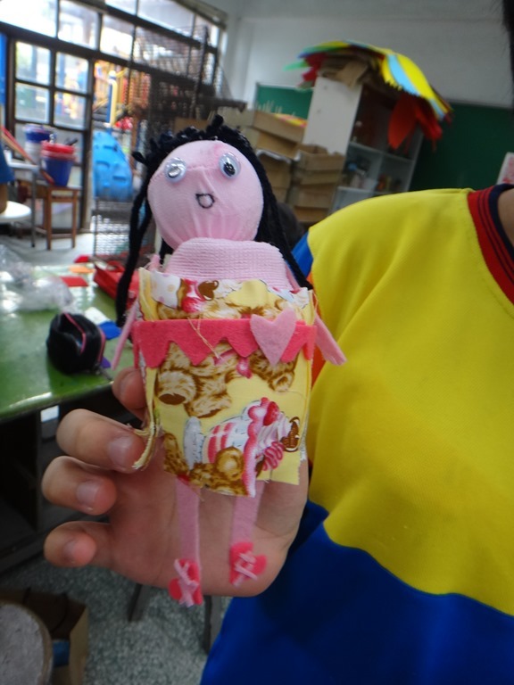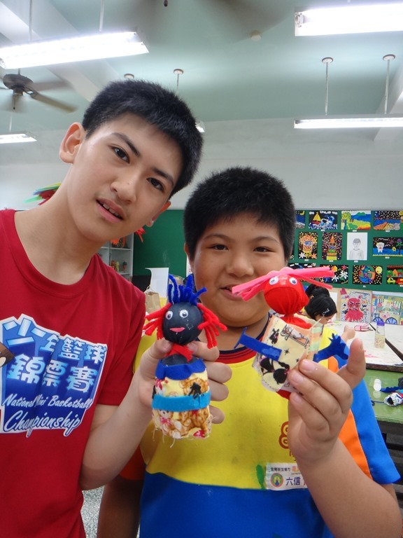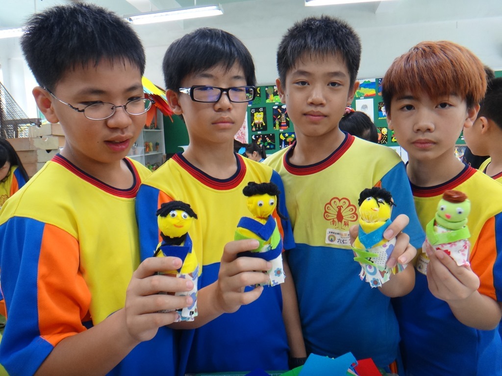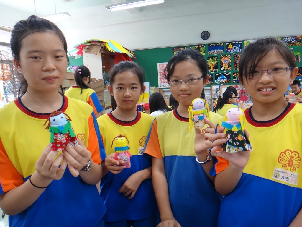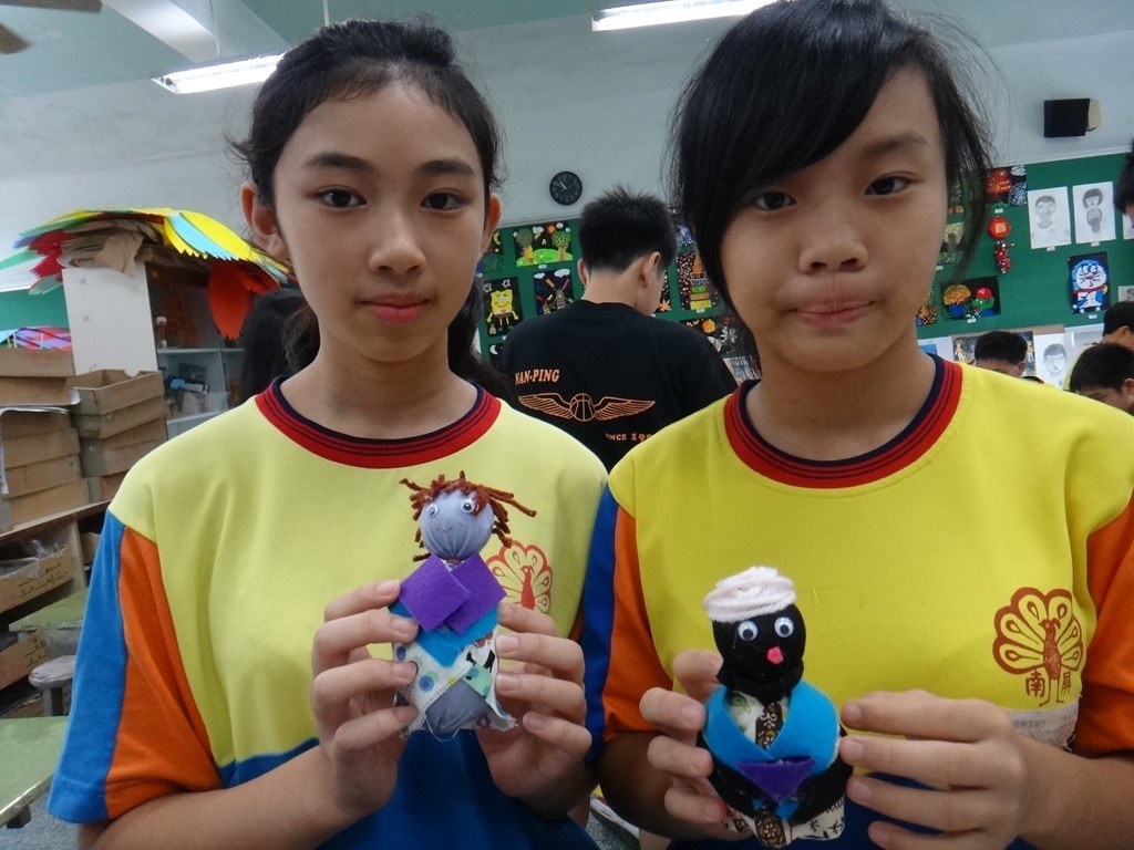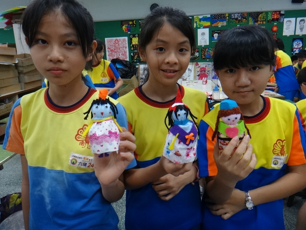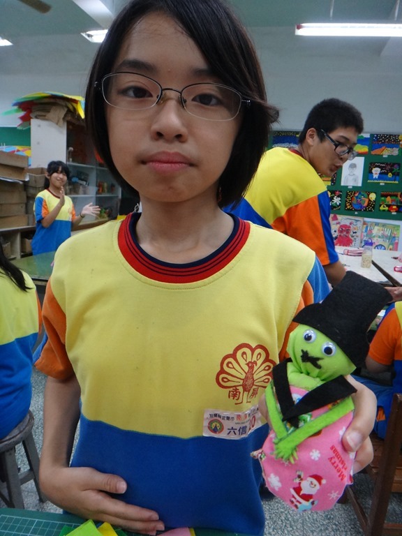 3個班完成,孩子細心和創意無限。嚴格來說,1/3沒有收藏的喜愛感覺,我想:這次用保麗龍膠黏的,不是自己親手縫的,對襪娃的情感不夠,如何營造六年級喜愛自己的創作,是我教學待努力的地方。DSC05462