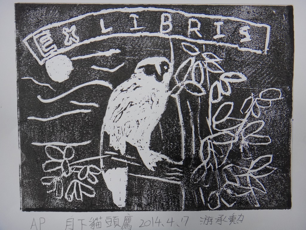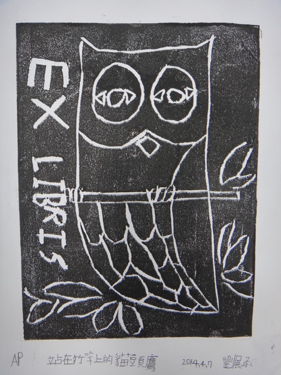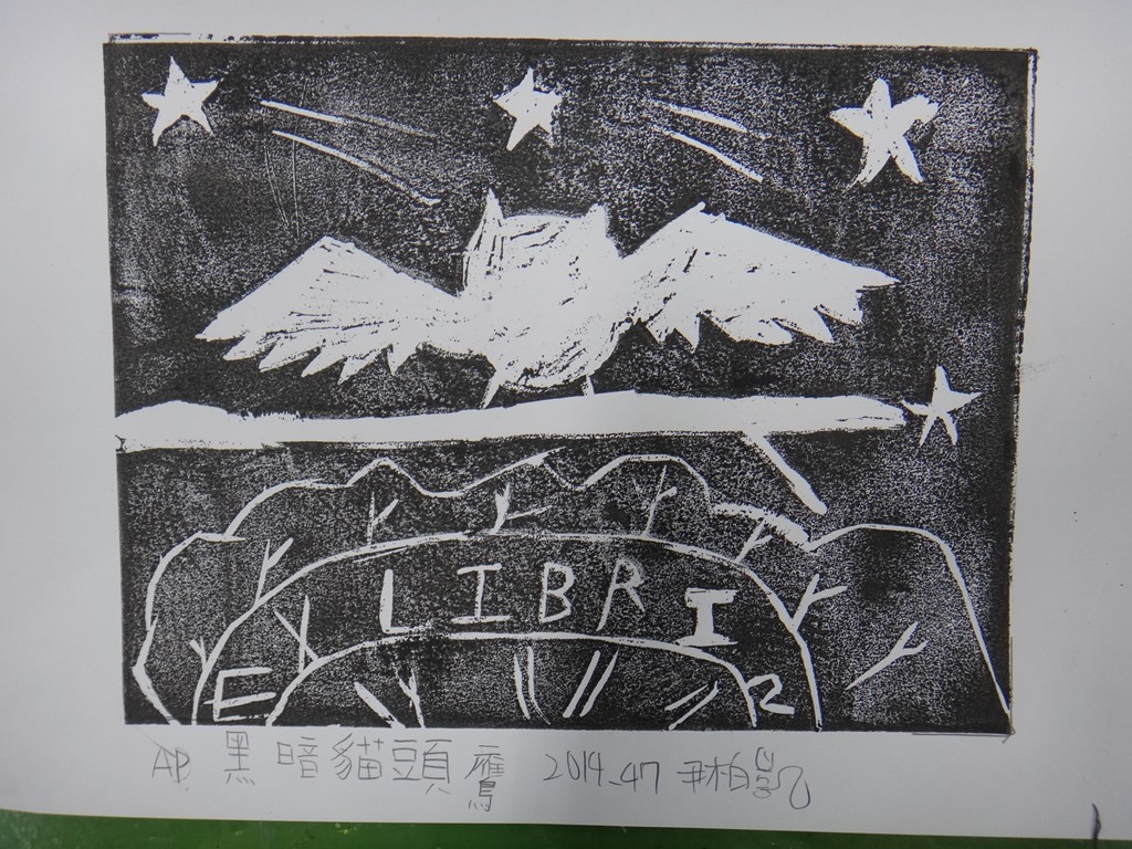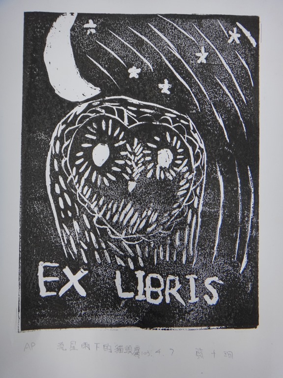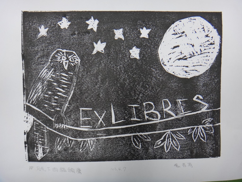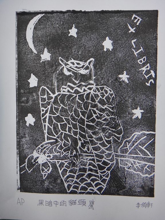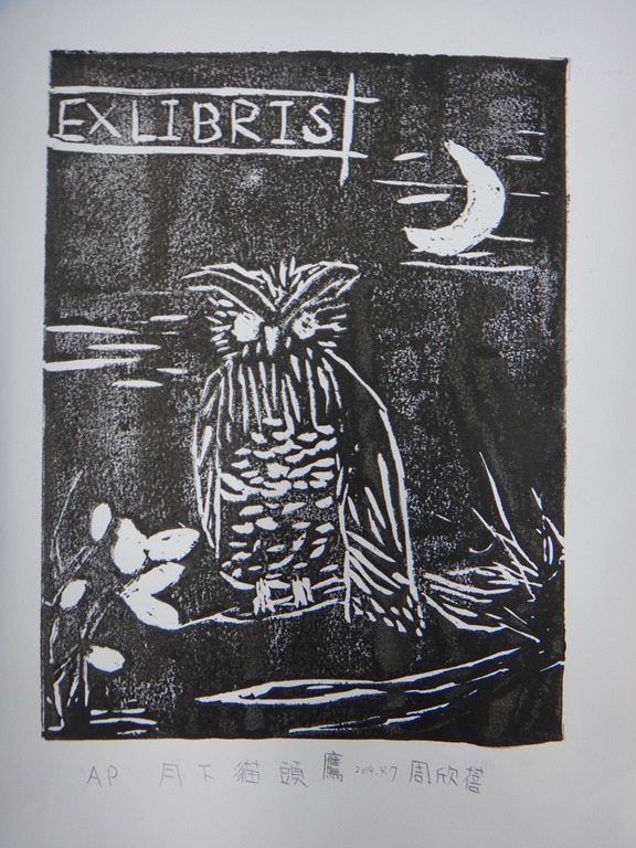五體班貓頭鷹藏書票
