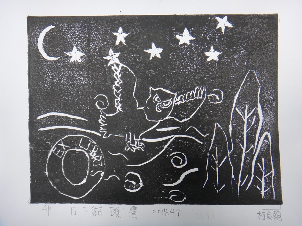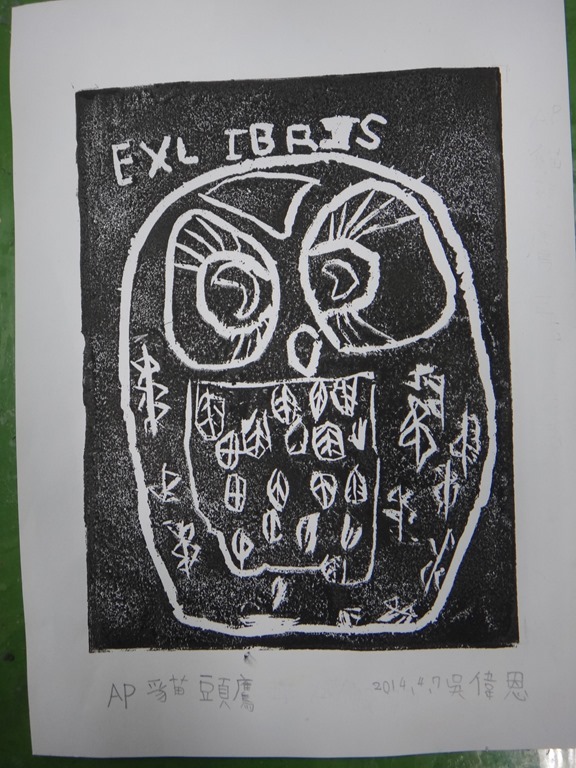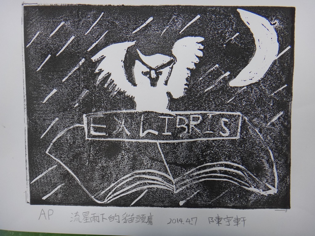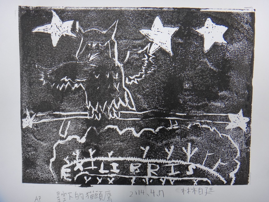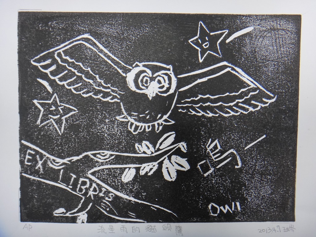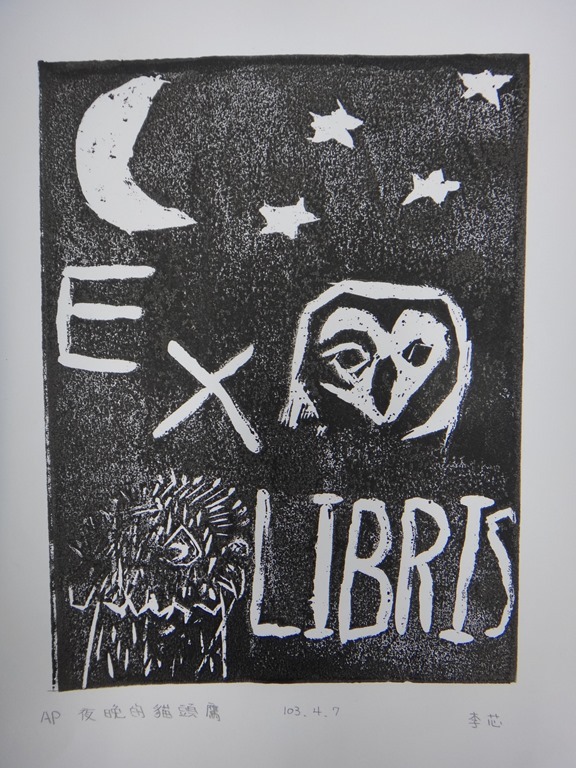 五體班貓頭鷹藏書票