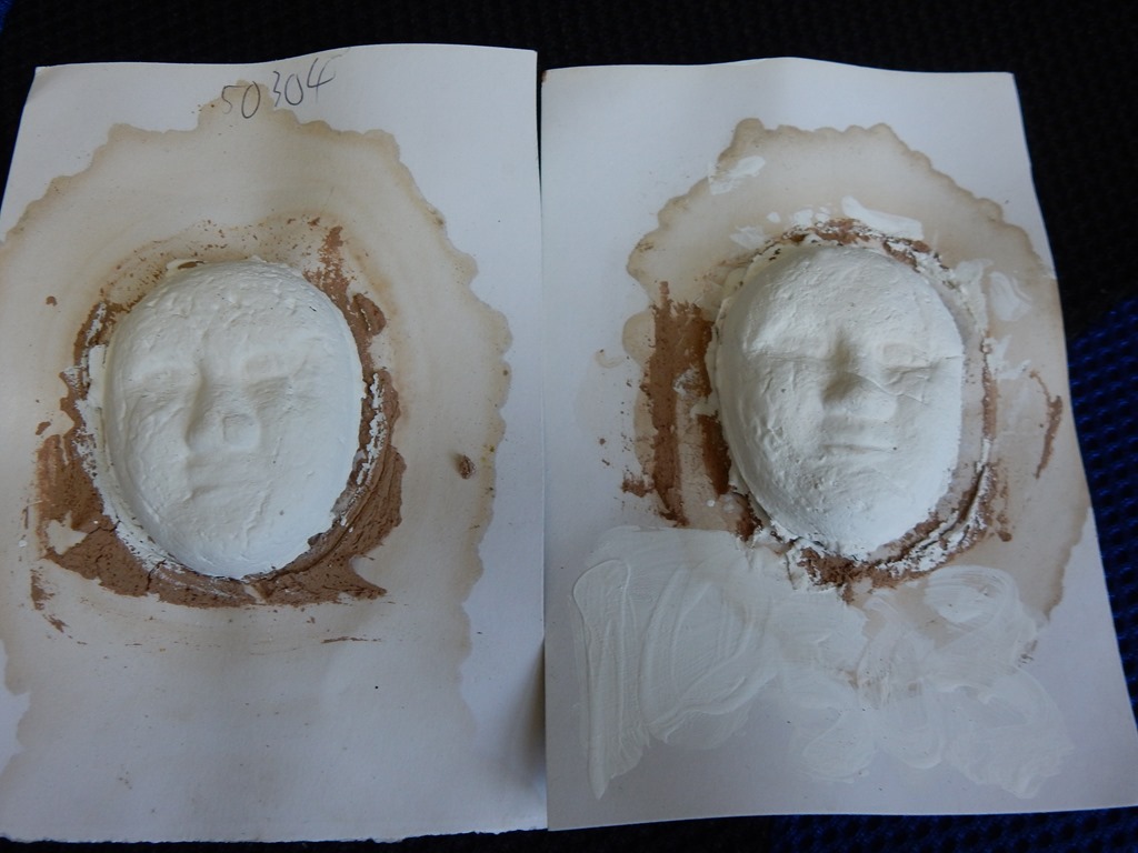 土拈香粉加水揉成土,要控制水分不能太多,脫模靠紙片壓黏起,乾的過程很容易發霉,水泥漆塗白底,乾後再彩繪[@more@]