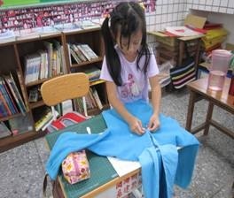 利用綜合領域的課程融入家庭教育的議題,讓學生在課堂上多次透過實際練習摺衣服及整理書包,學會之後,再與同學討論可以幫忙父母做哪些簡單的家事例如:擦桌子、掃地、晾衣服等都是可以幫忙父母做的家事。