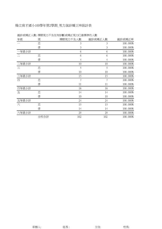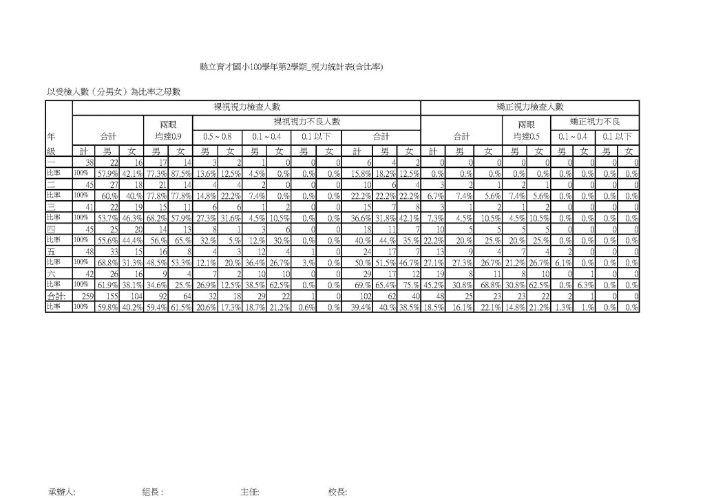 六-1-3學生接受健康檢查的完成率(視力)