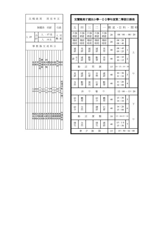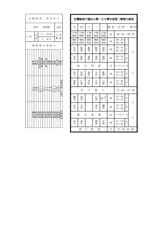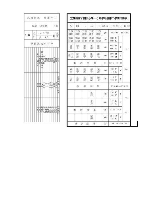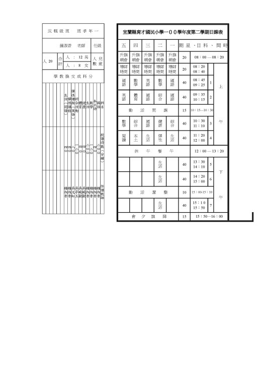 四-1-2-1依據課程規定安排健康教育課程(各年級課表)