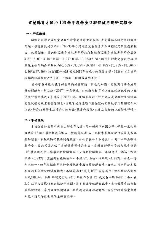 1-2-1育才國小103學年度學童口腔保健行動研究報告