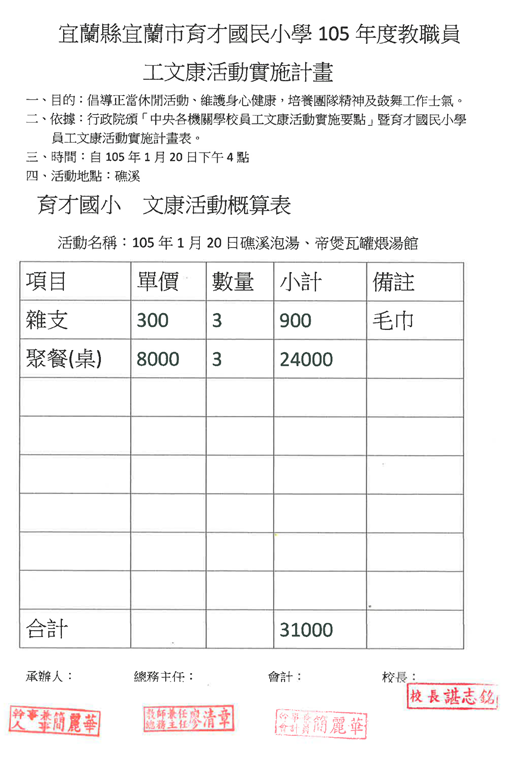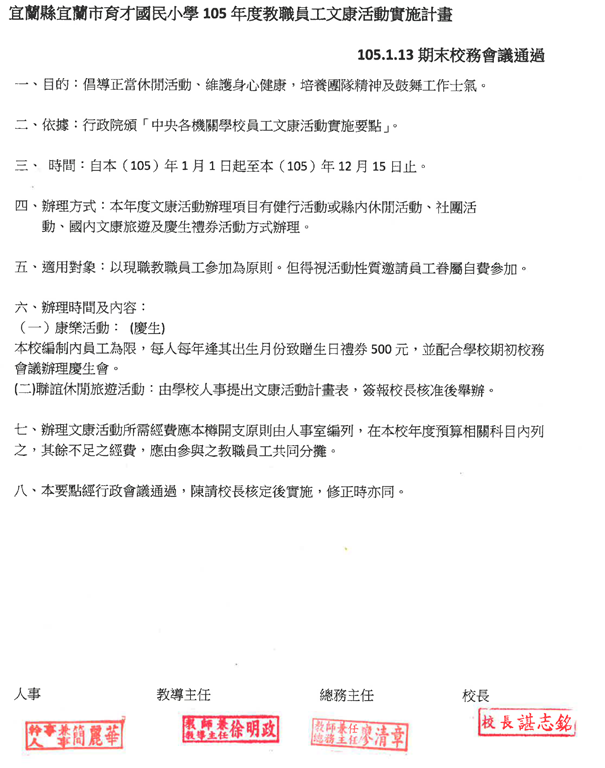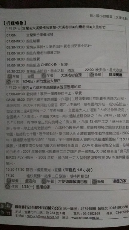 寒假教職員工文康活動兩天一夜105年1 月24、25日
