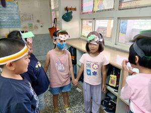 發佈於 2024 年 12 月 5 日問候語驗收 學生每人有8張同色點點貼(但每個人的顏色不同)和一張九宮格(上面有問候語),必須找到8位跟自己貼紙顏色不同的同學,唸出其中一個語詞,同學幫他貼上小貼紙,最後一格則是找老師,老師隨意抽2-3個語詞,唸對則可以兌換獎品。