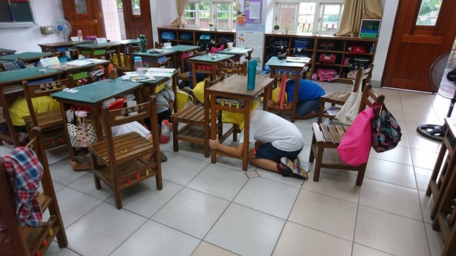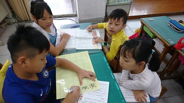 生活點滴 升上三年級後,我們有了外掃區域,除了自己的教室之外,也開始為校園做整潔服務了!大家都很認真地完成自己的工作呢! 每週一早上都要升旗,大家一起唱國歌~ 每週三早上是i聽時間,可以聽好聽的故事,認真完成學習單的人也有機會兌換獎品喔! 午餐時間大家排隊盛飯~ 進行防災演練 三年級後,我們試著分組討論,找出國語課文的段落大意唷!