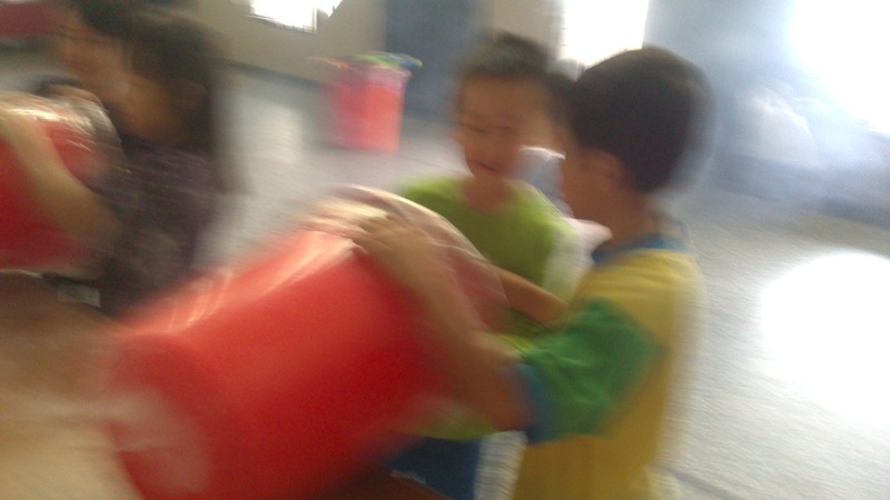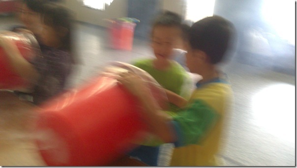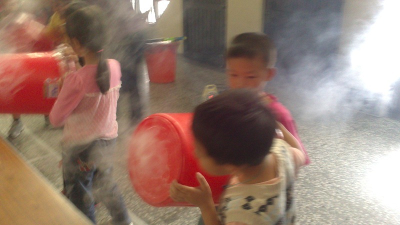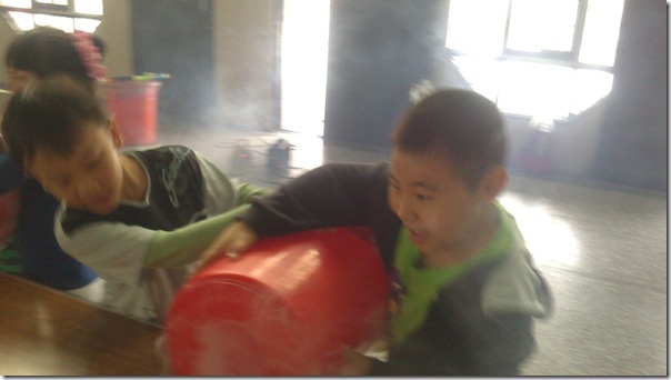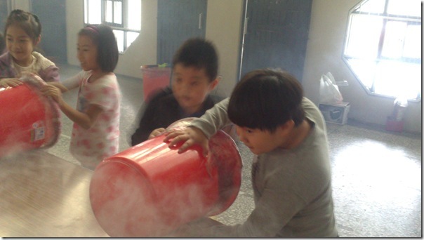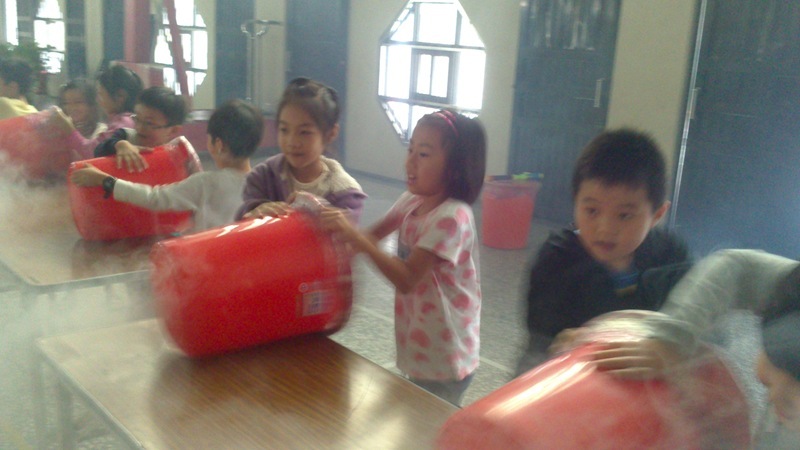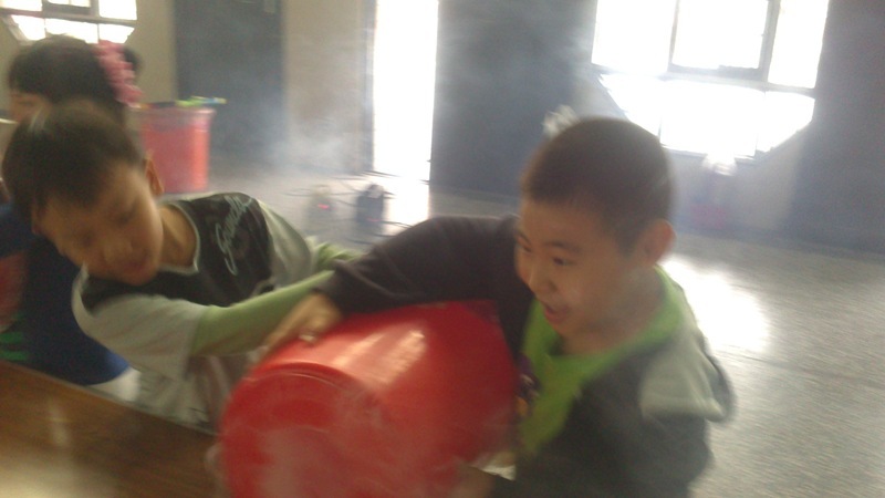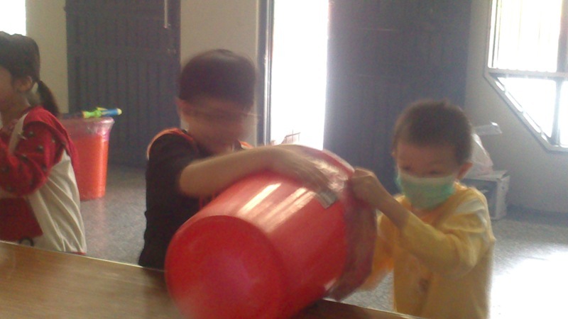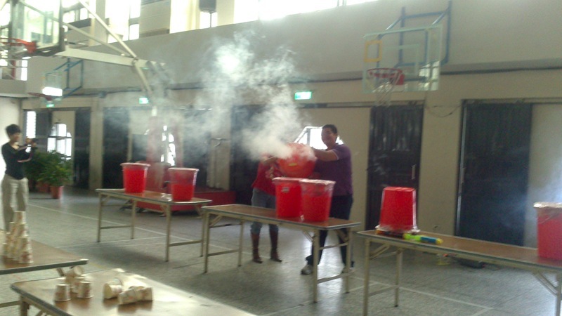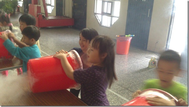 今天康軒叔叔來學校教大家玩空氣砲的遊戲,看看誰最厲害吧!