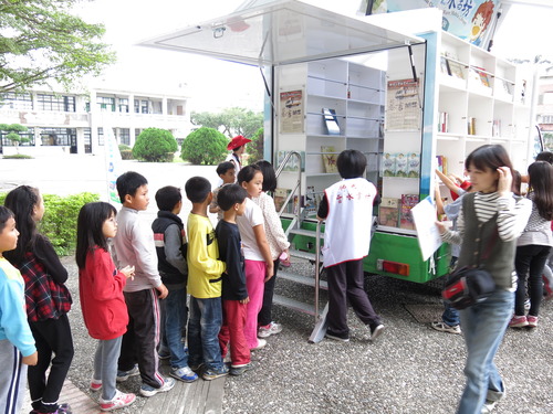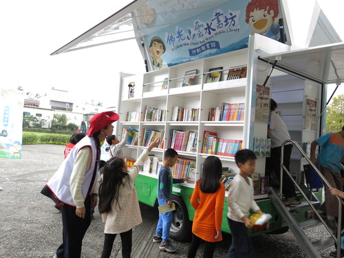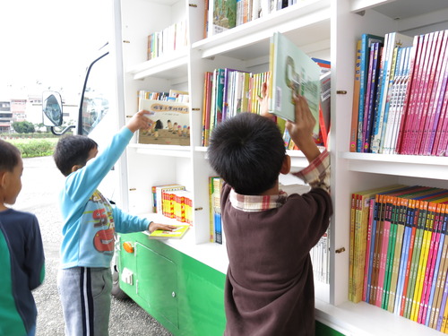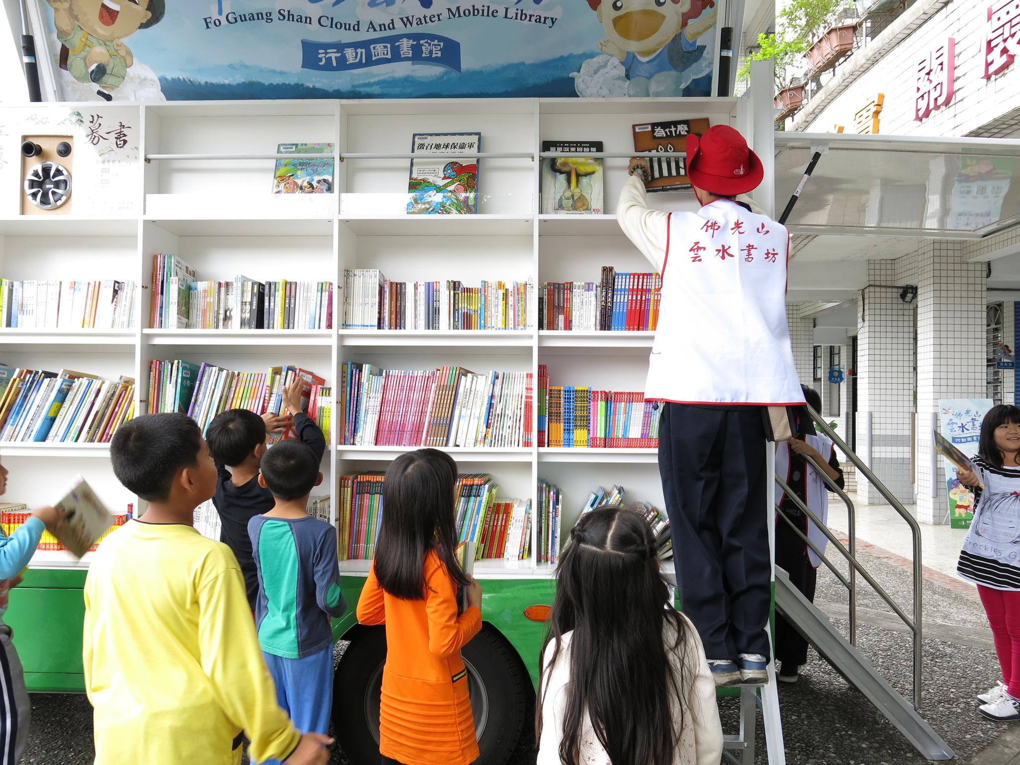 101學年上 20121120佛光山雲水書坊行動圖書館作者:四結國小單位信箱2012 年 11 月 20 日2021 年 3 月 18 日 佛光山的志工們熱心服務,為小朋友拿放在高處的書喔~ 向志工叔叔登記,就可以把想借的書借回家看喔~哇~有好多同學等著排隊上車呢~注意安全不要推擠喔! 附近有小椅子,可以坐著輕鬆閱讀 期待下次雲水書坊行動圖書館的蒞臨~