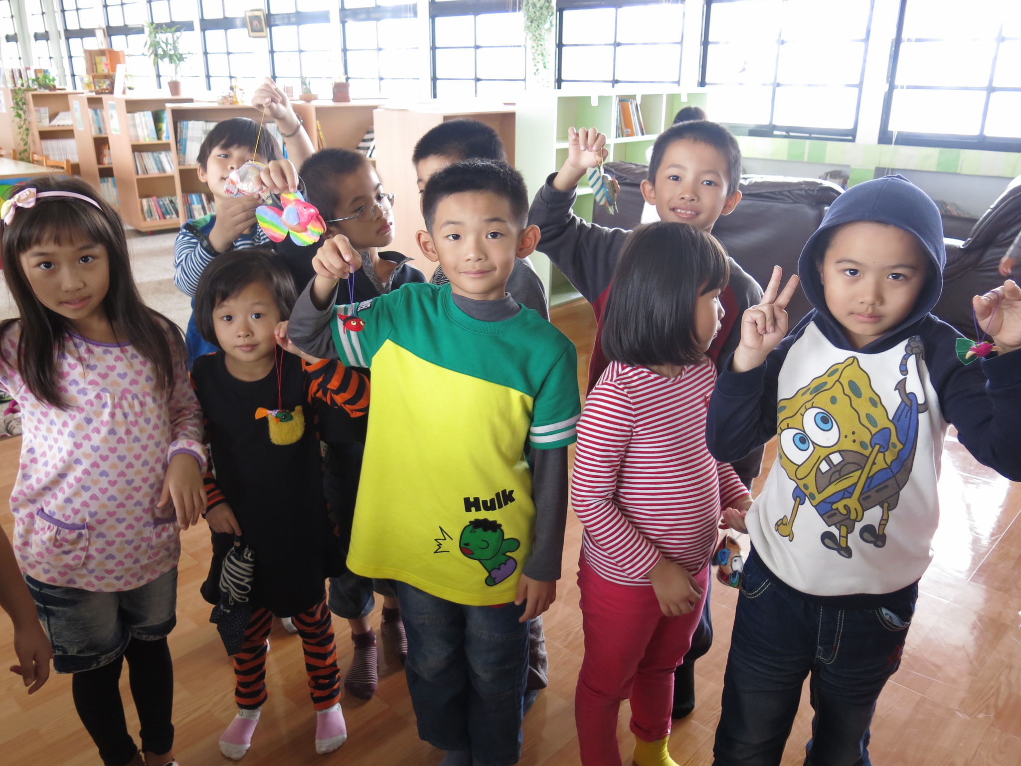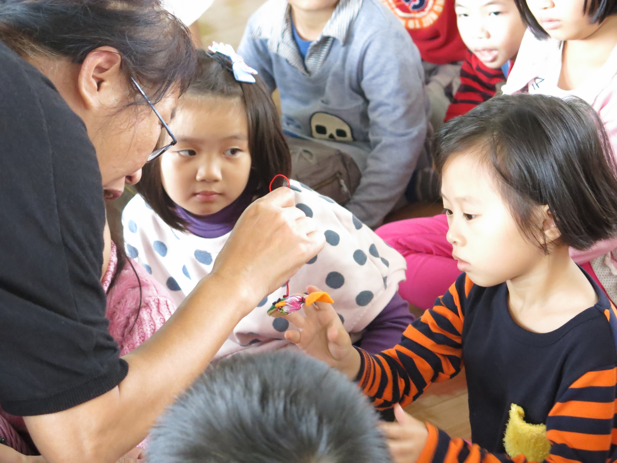 故事講完後,大芬老師很體貼地讓還沒拿到禮物的小朋友也有機會拿到禮物,只要排隊分享一個自己曾經與朋友「分享事物」的經驗就有獎品喔!