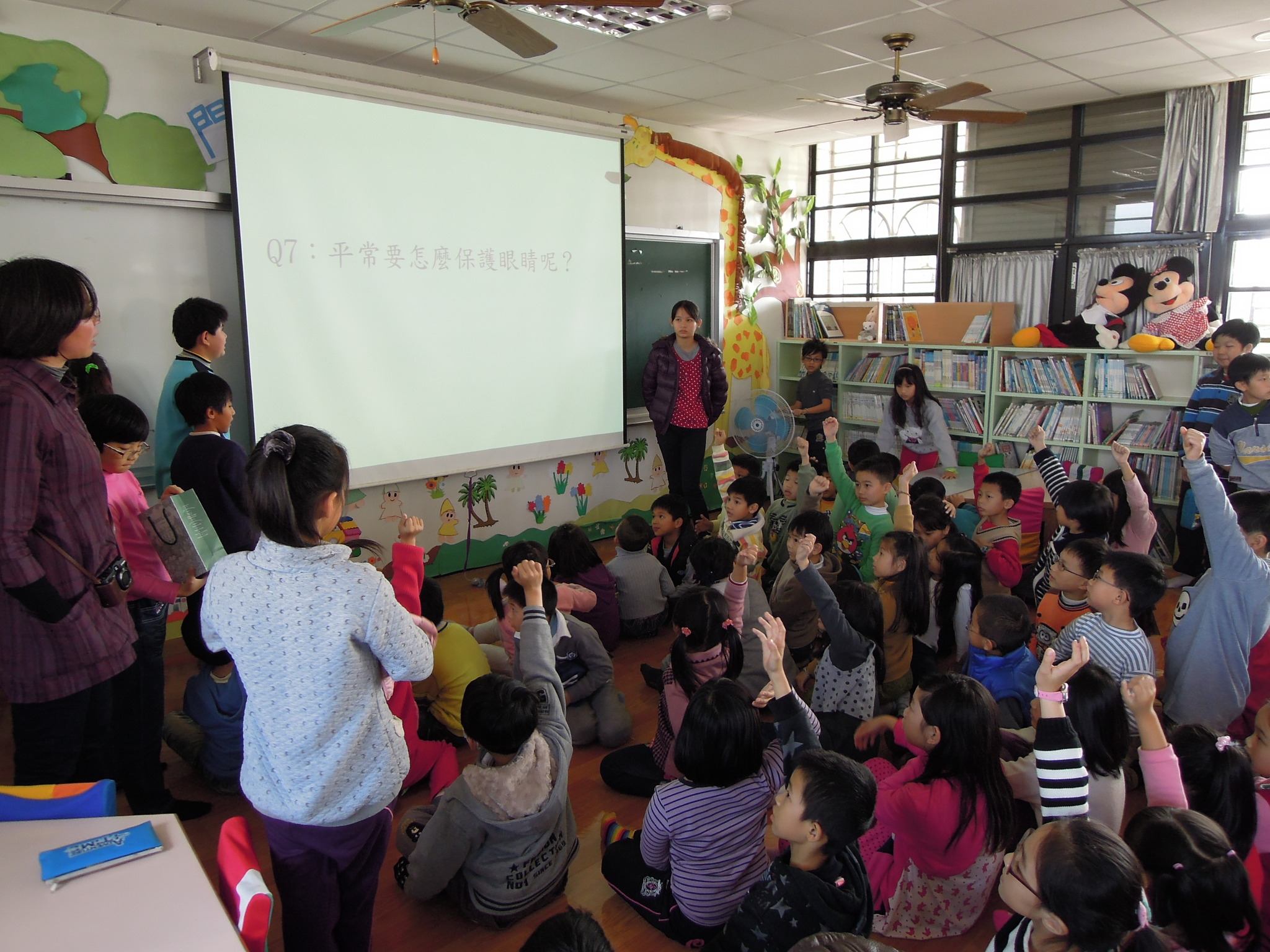 本日的故事是繪本「方眼男孩」,告訴我們眼睛保健的重要性,並且要少看電視打電腦,讓眼睛多休息。說書人哥哥姊姊用心準備了許多問題讓小朋友們思考、加深印象,最後還帶大家做按摩運動放鬆眼睛,並且一起跳活潑可愛的「eye眼健康操」唷!