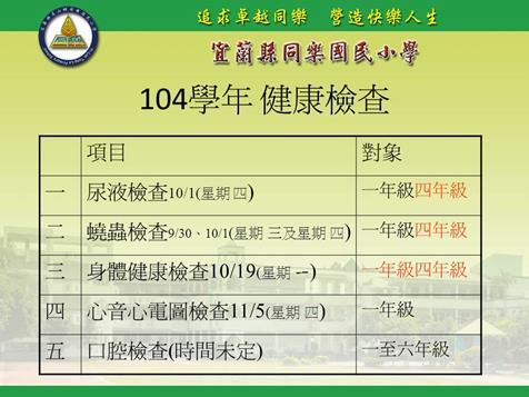 宜蘭縣同樂國小104學年度學生健康檢查實施計畫