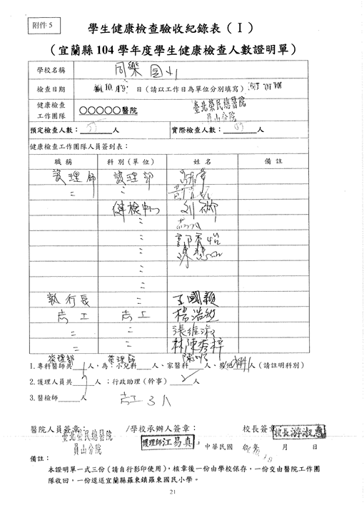宜蘭縣同樂國小104學年度學生健康檢查工作小組