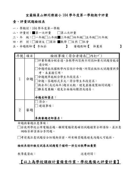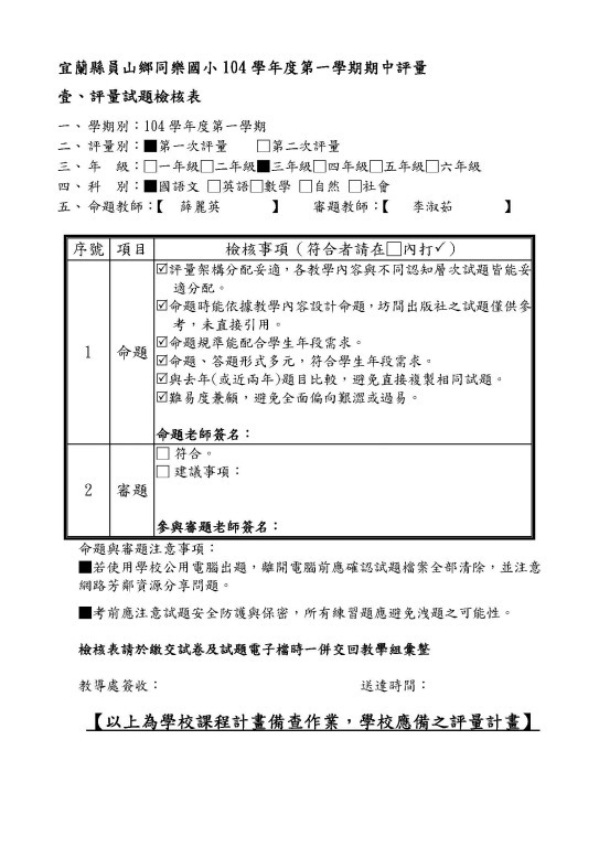 104學年第一學期 第一次定期評量結果分析 五年級電子檔 (紙本備查)