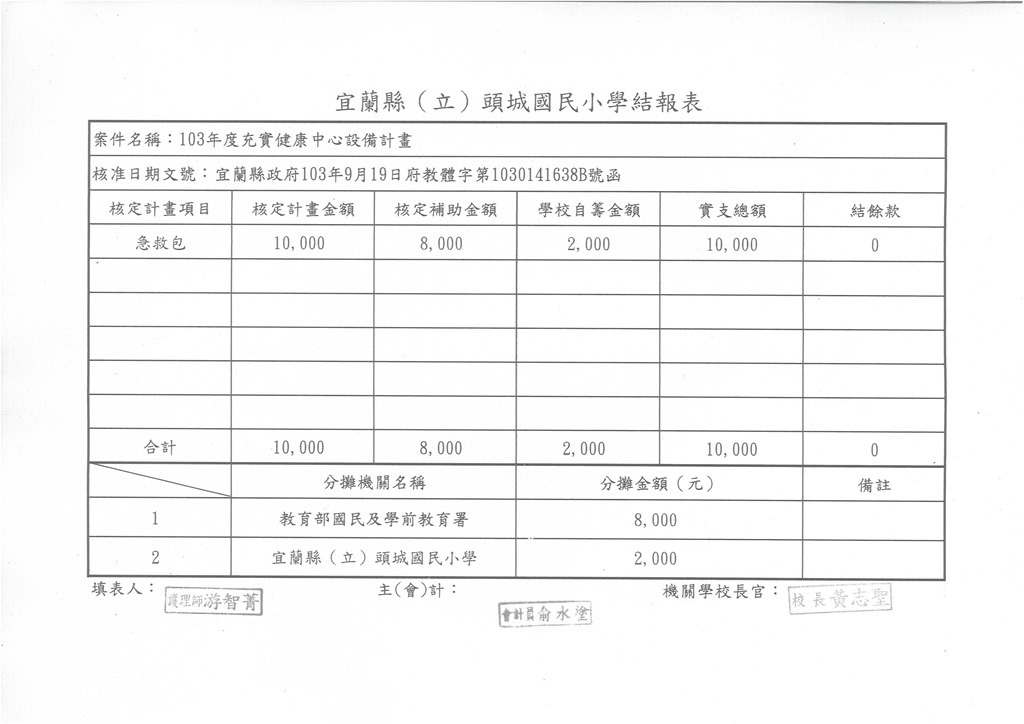 103學年度學校衛生及健康促進學校相關經費表