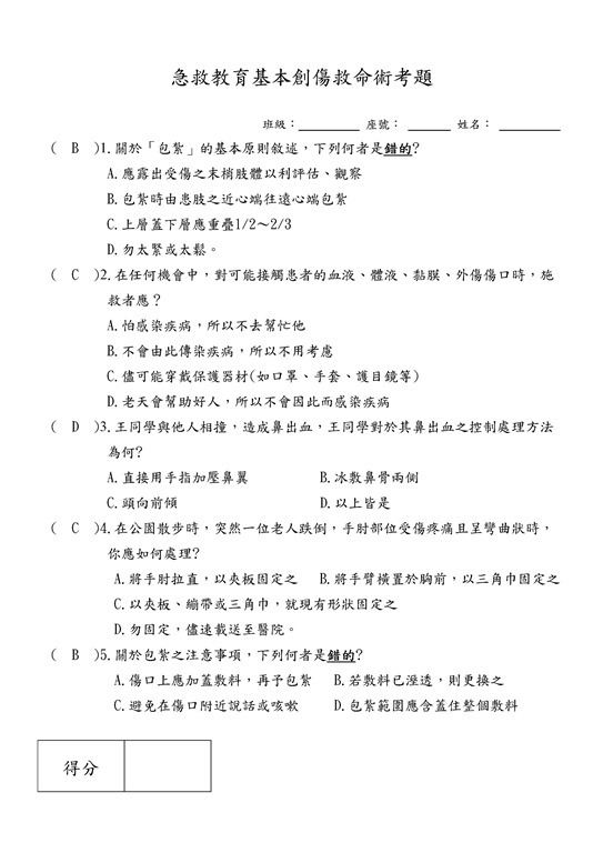 104學年度五年級急救教育-創傷止血包紮66 月 201618 3 月 2021104學年度五、六年級急救教育計劃創傷止血包紮上課情形五年級筆試測驗卷 五年級技術練習三角巾練習 三角巾練習 分組比賽 彈繃練習