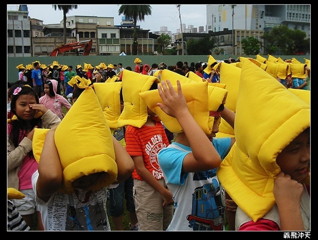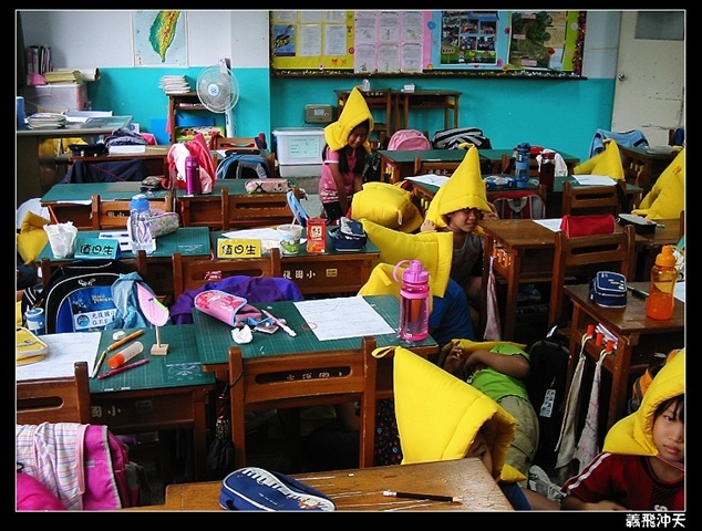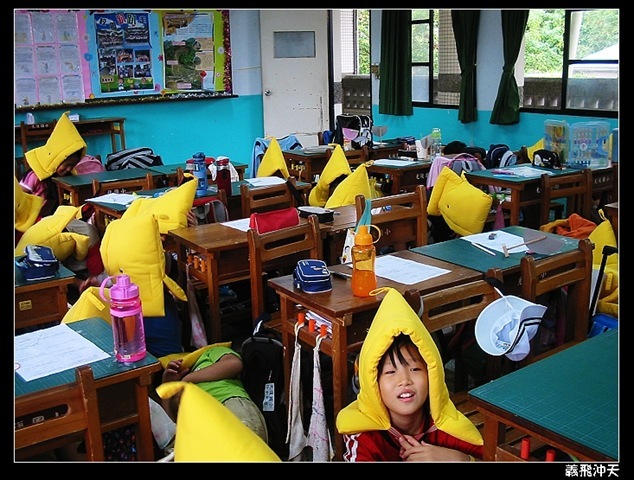 發佈於 2012 年 9 月 25 日2021 年 3 月 18 日 作者: 陳昌俊921全國防災演習適逢九二一大地震紀念日,縣政府耗費巨資為全縣中、小學生購置了防災頭套,做好最佳之準備,以求把災害降到最低。當日早上9點21分實施防震演習室內:1分鐘就地實施蹲下、掩護、穩住三要領直到主震停止。 當主震停歇時,帶著掩護頭部的小黃帽,遵守不語、不推、不跑三原則,迅速往操場空曠處集合。 到達集合位置後,天空下起毛毛細雨,小黃帽正好也發揮了遮雨的作用,平常亦可以放置椅背當護墊,午睡時更成了午安枕,真是太感謝縣政府的德政。