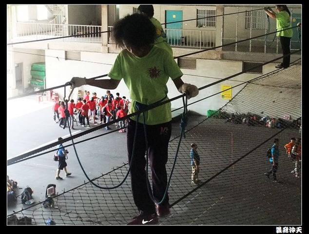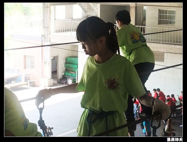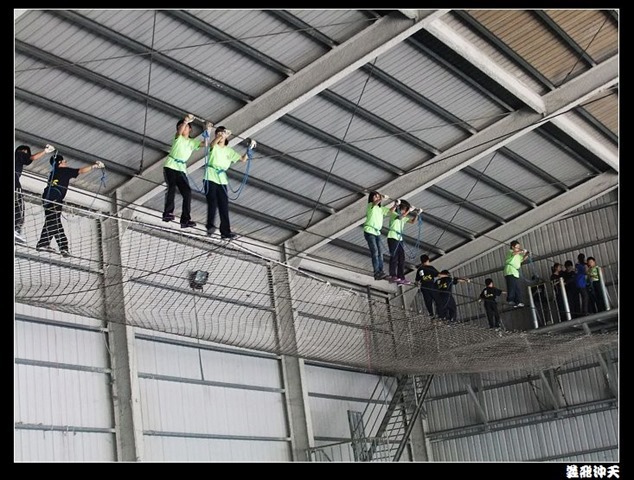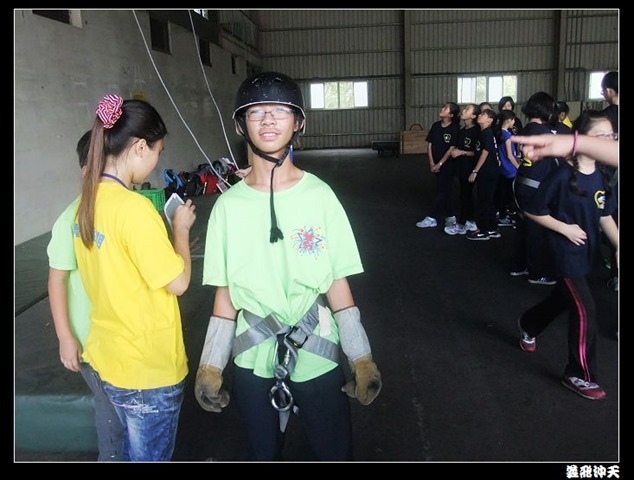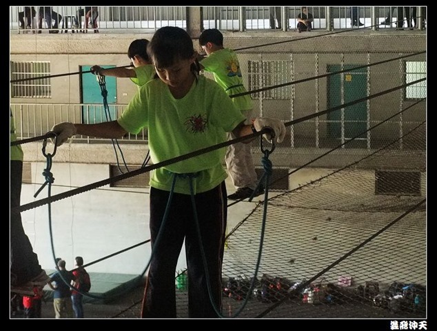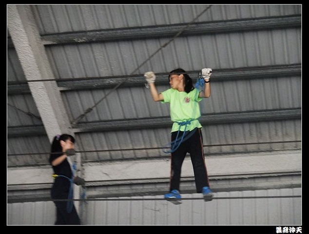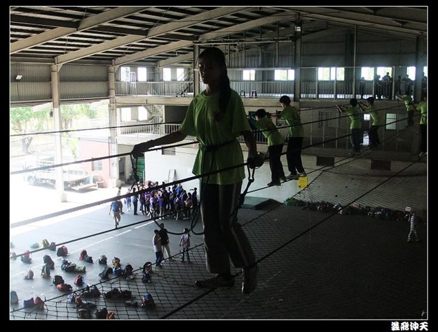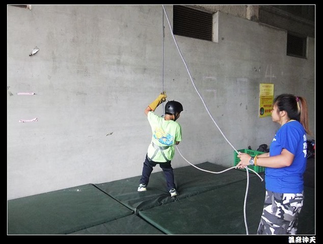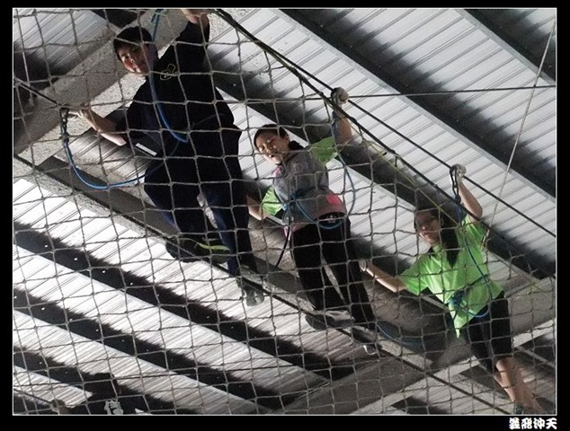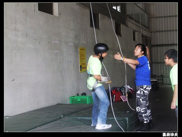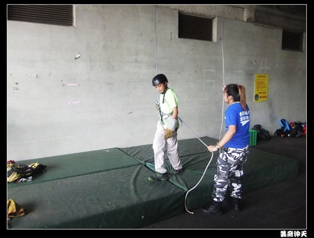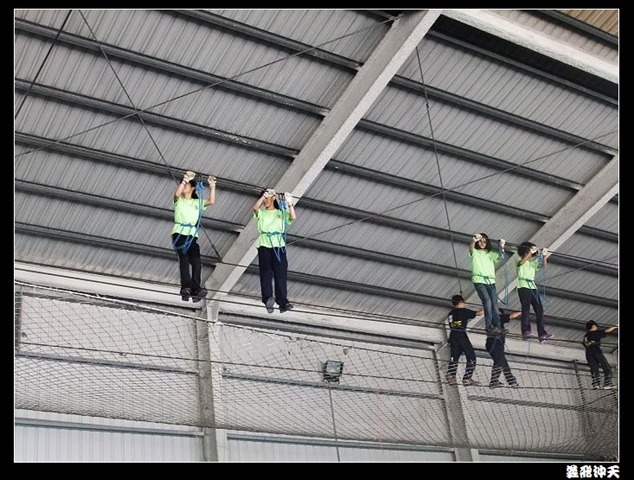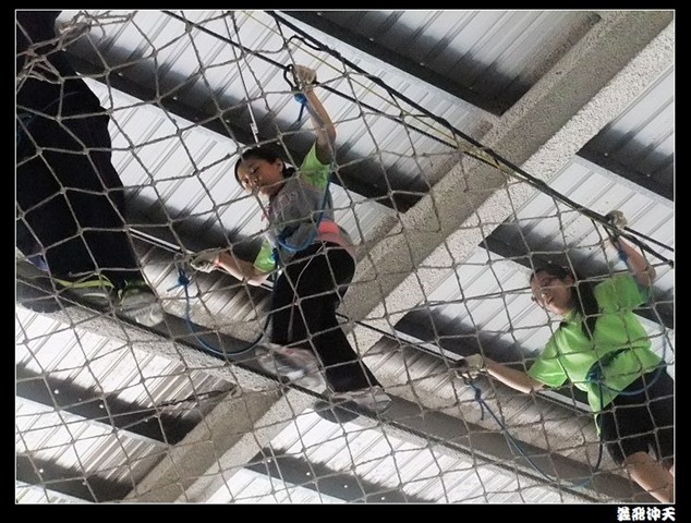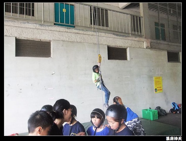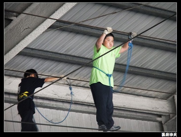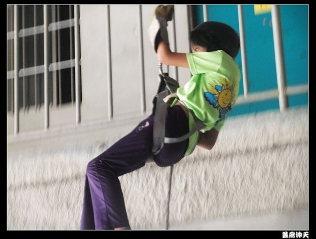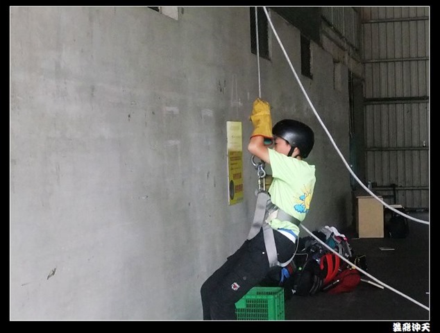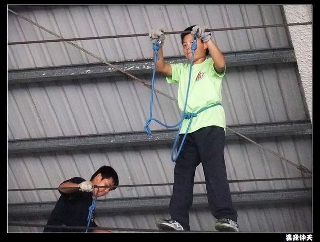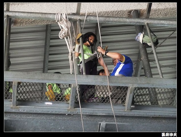 垂降高度達三層樓,這三層樓的高度說高不高,但卻是人類對"高"之恐懼的臨界點,好多人在半推半就之下,終於克服對高的恐懼,兩眼開開準備投胎了(OH……誤,是準備垂降囉)!