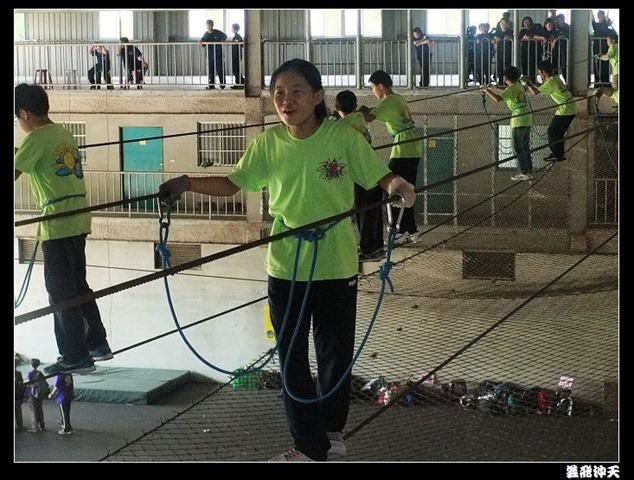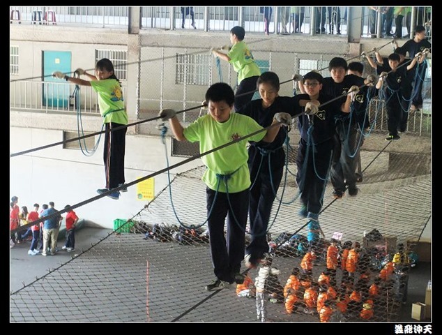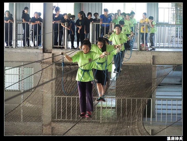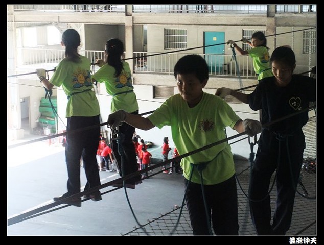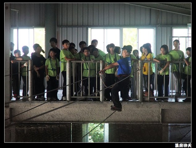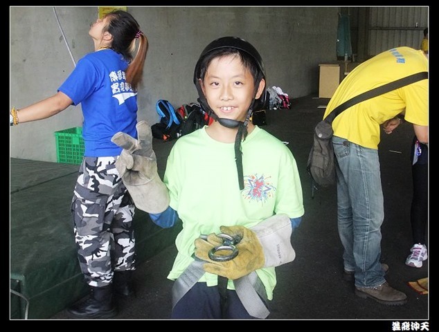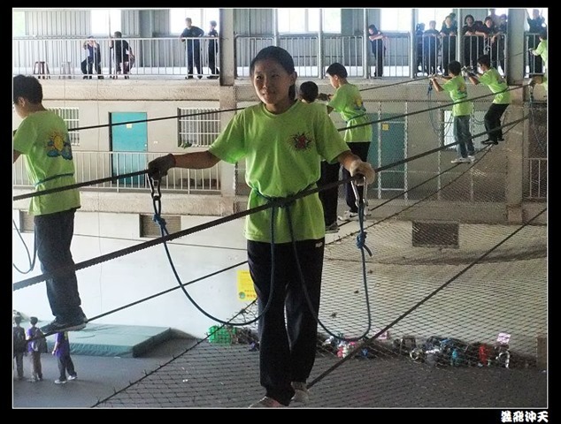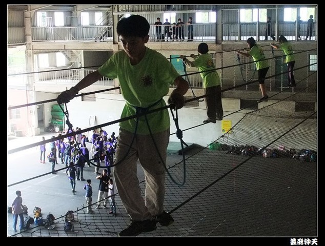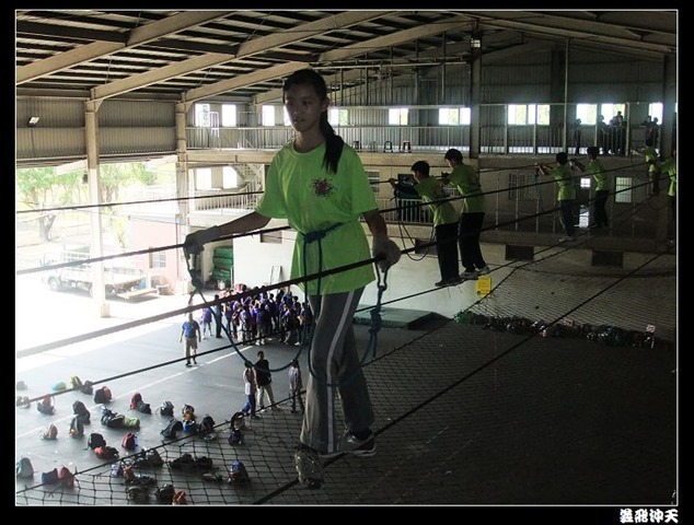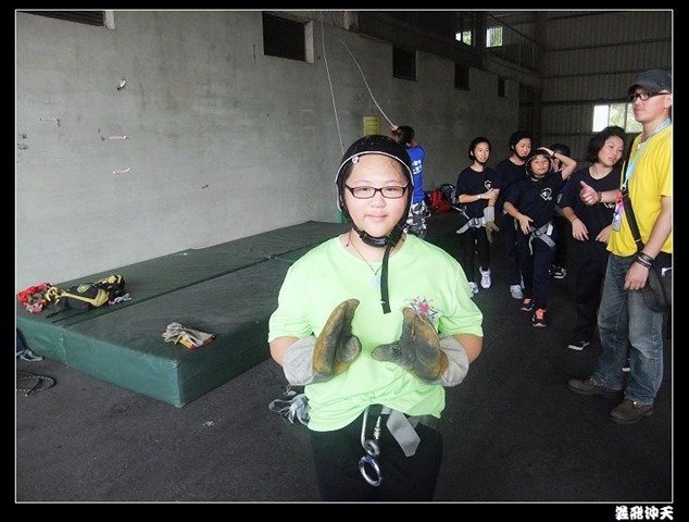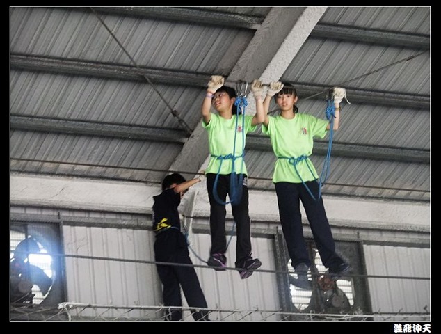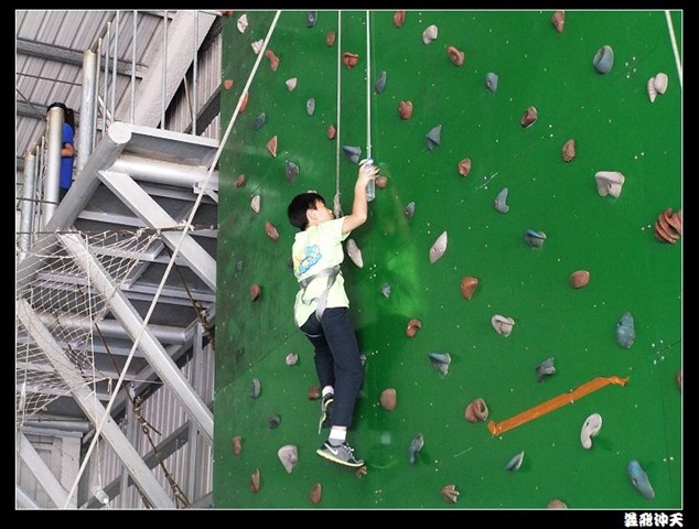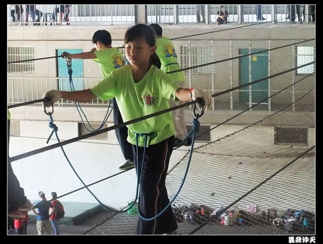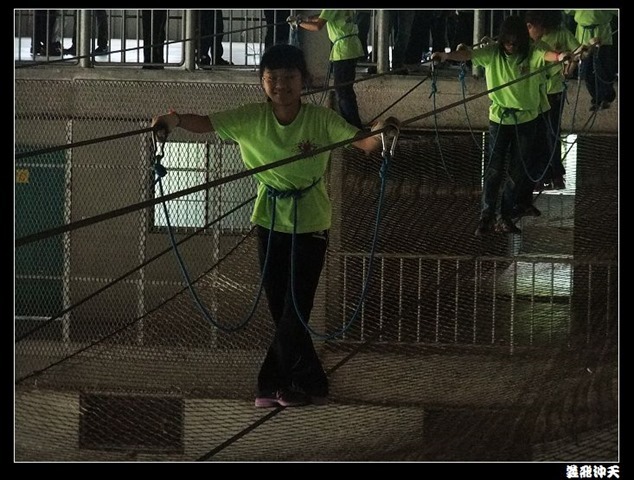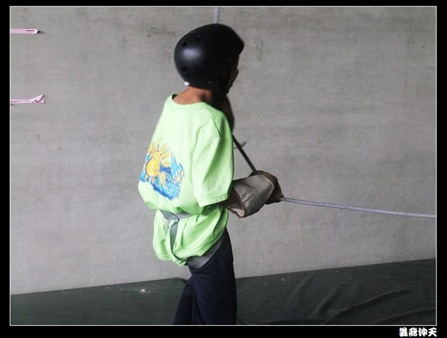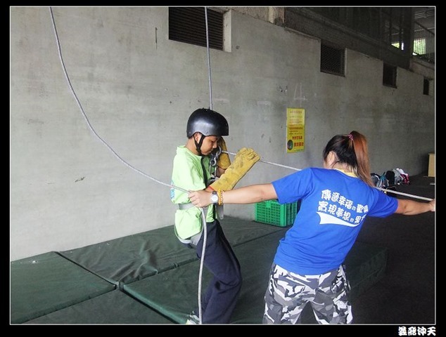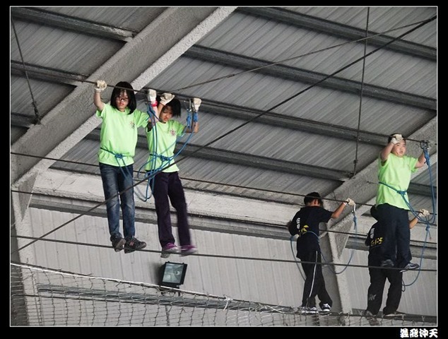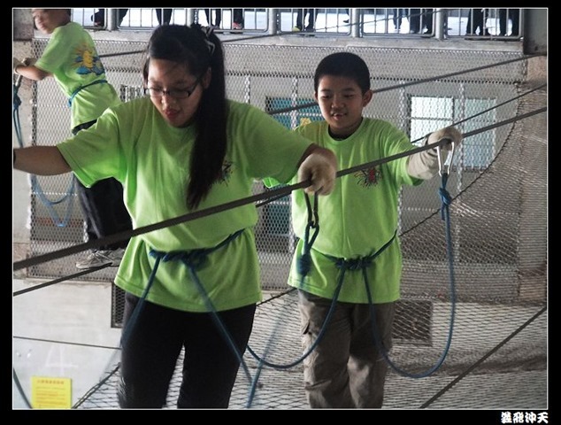 垂降高度達三層樓,這三層樓的高度說高不高,但卻是人類對"高"之恐懼的臨界點,好多人在半推半就之下,終於克服對高的恐懼,兩眼開開準備投胎了(OH……誤,是準備垂降囉)!