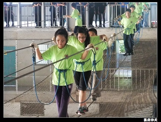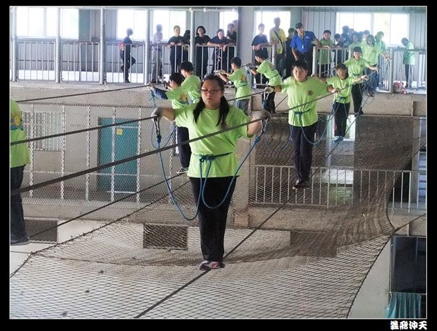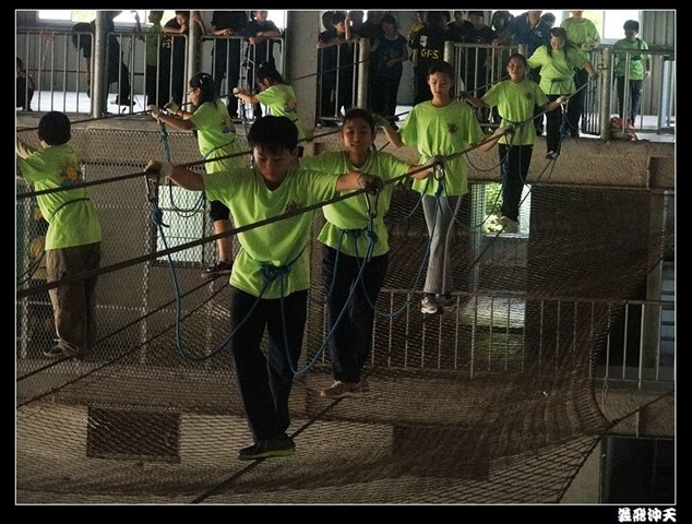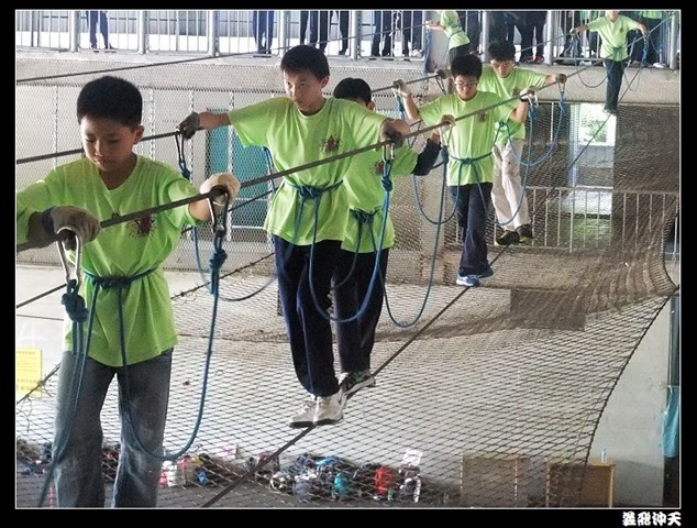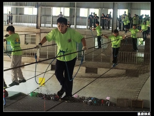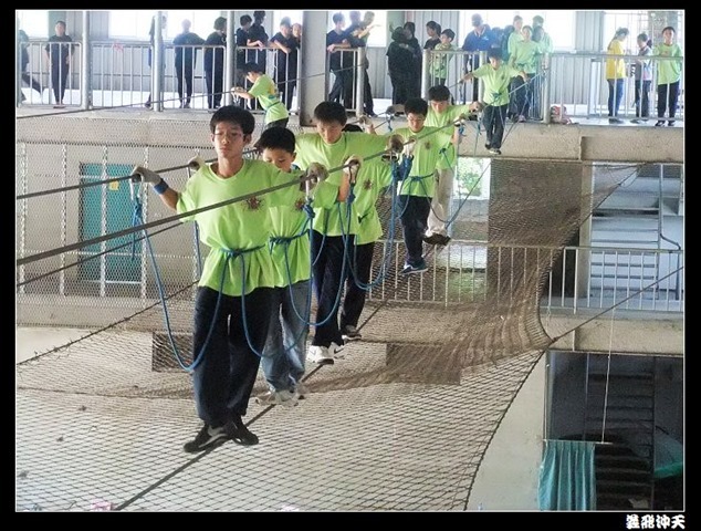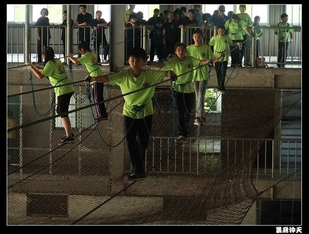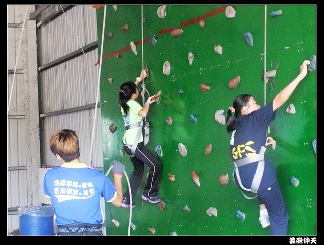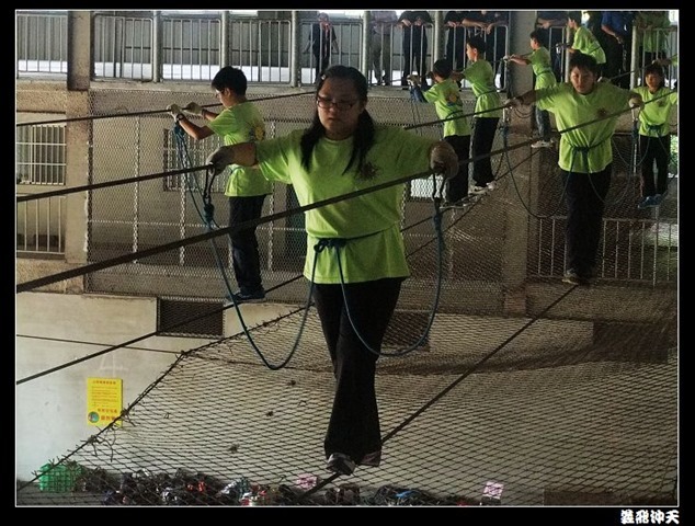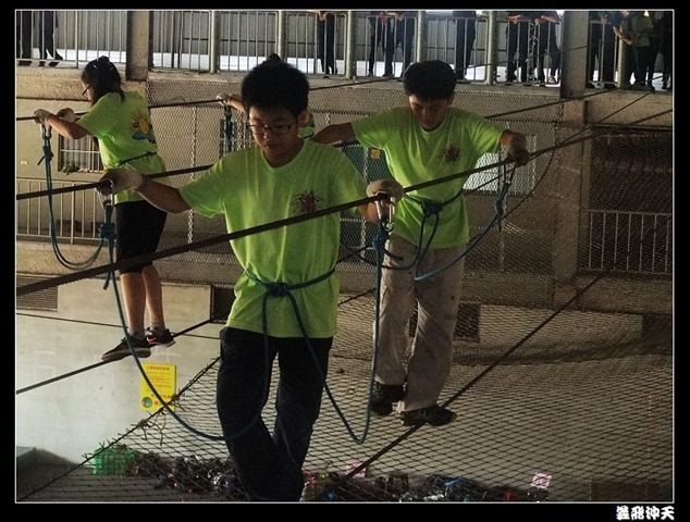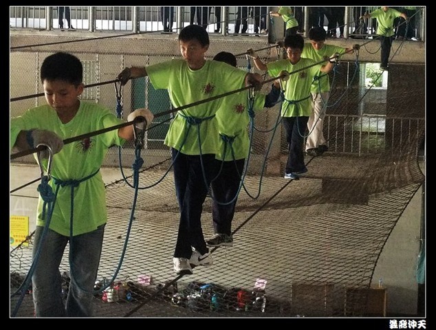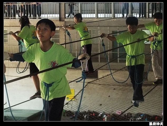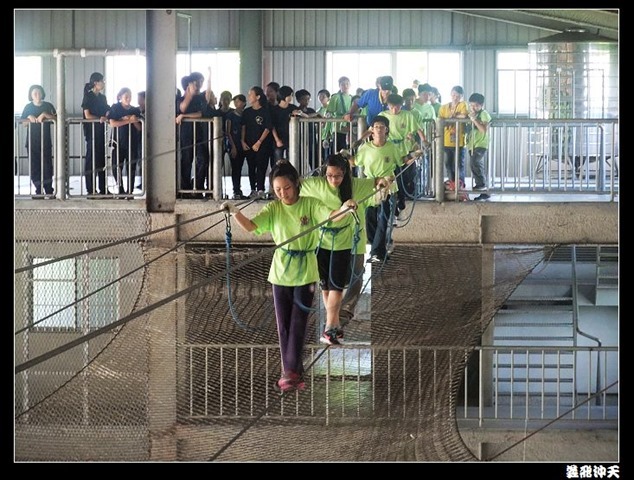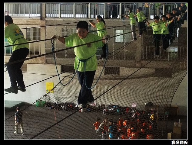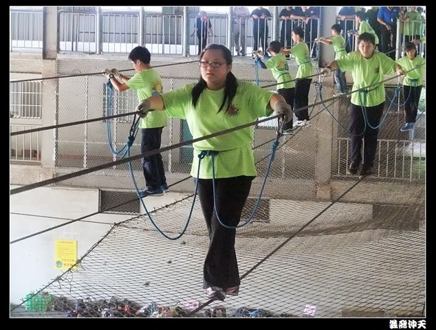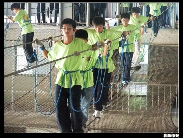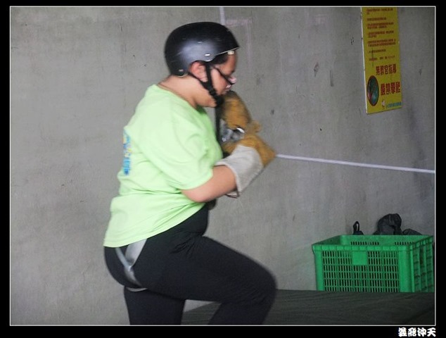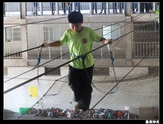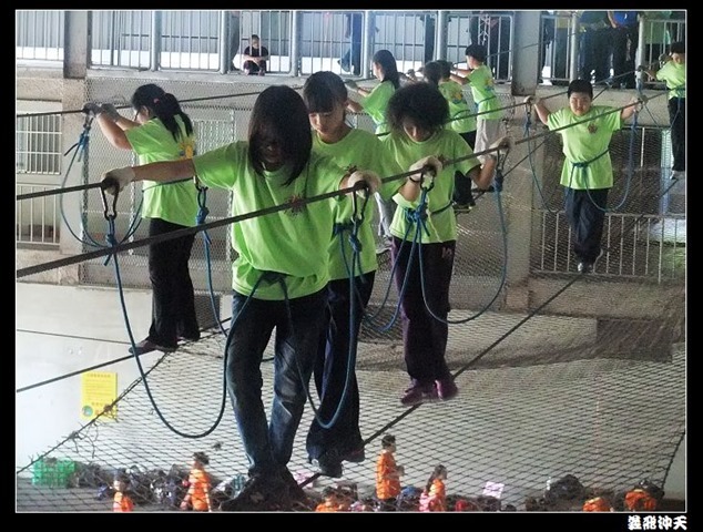 垂降高度達三層樓,這三層樓的高度說高不高,但卻是人類對"高"之恐懼的臨界點,好多人在半推半就之下,終於克服對高的恐懼,兩眼開開準備投胎了(OH……誤,是準備垂降囉)!