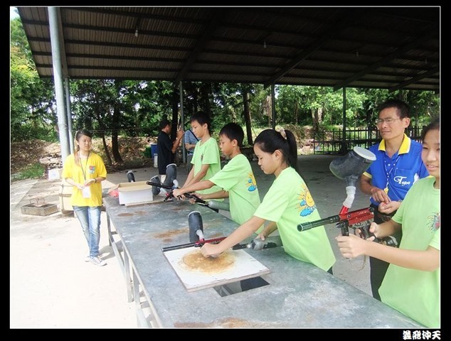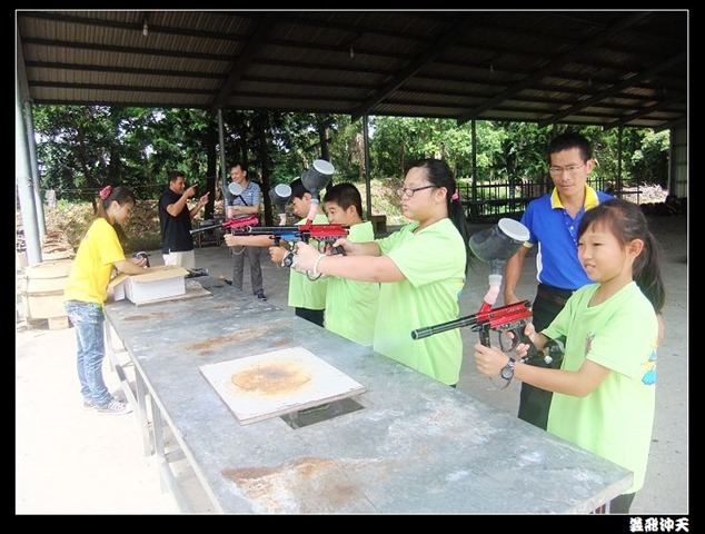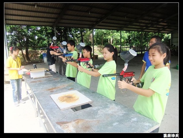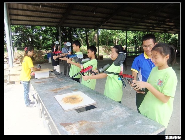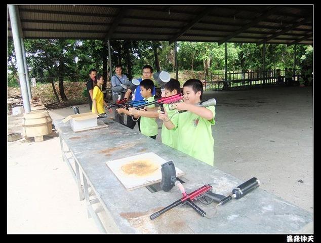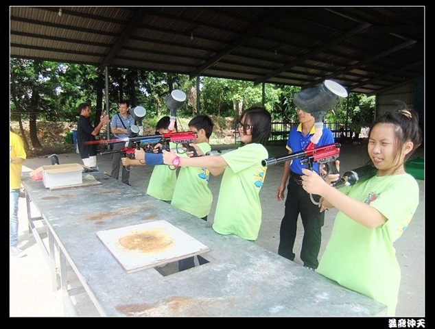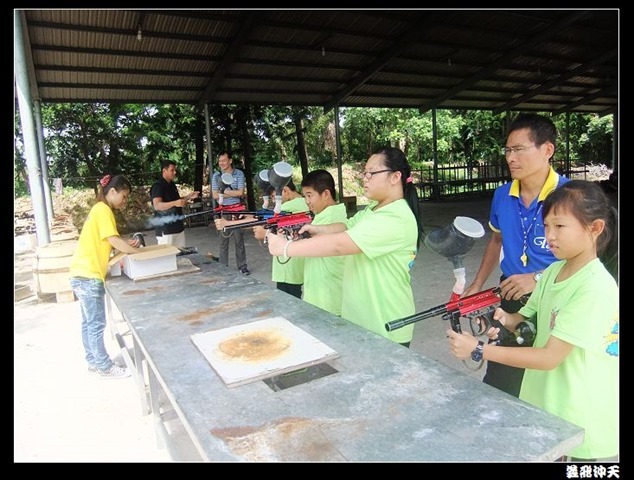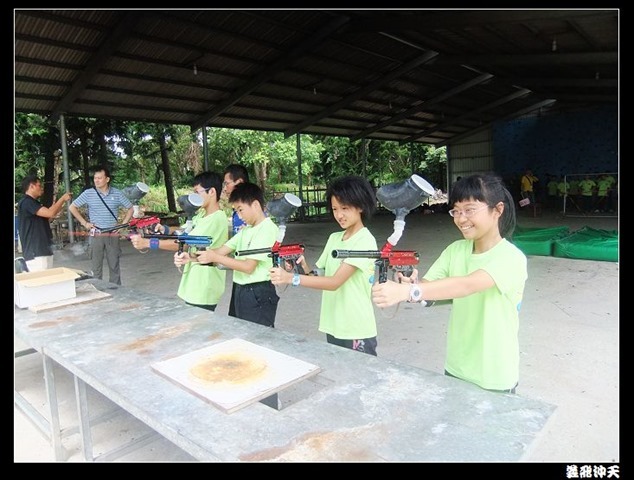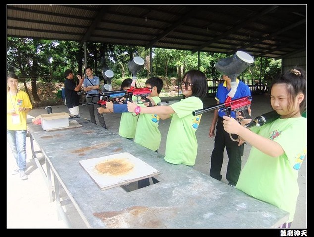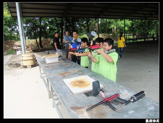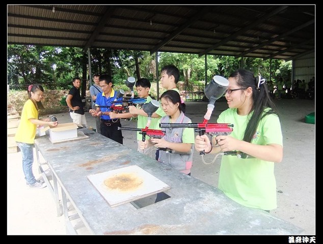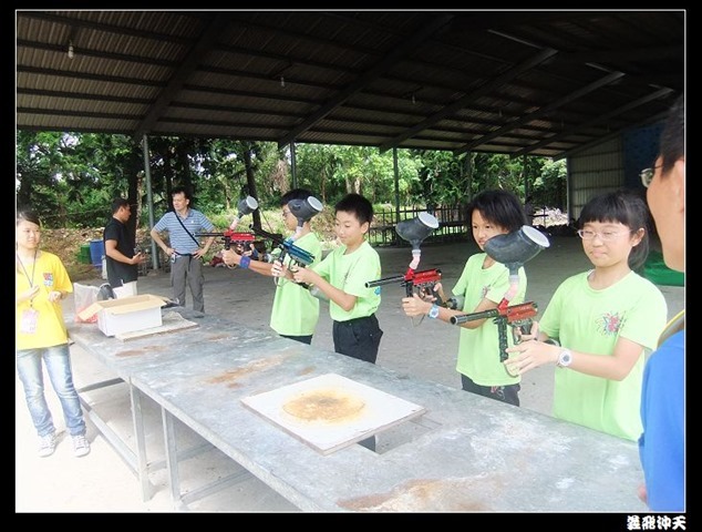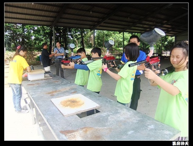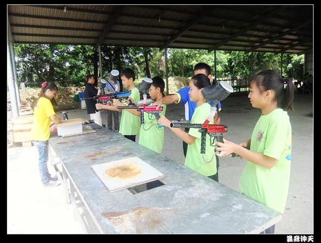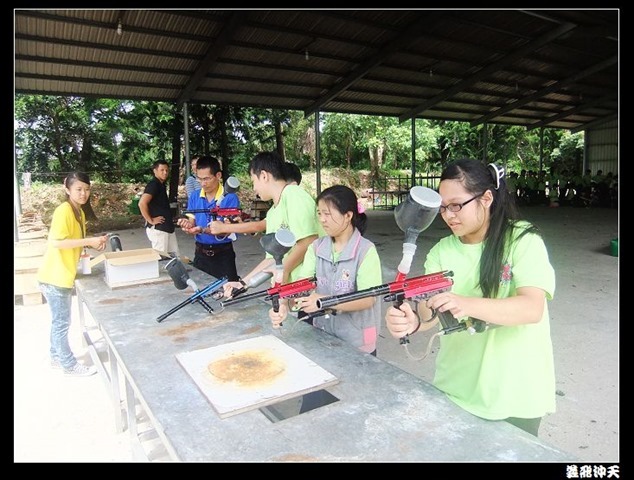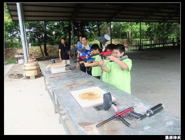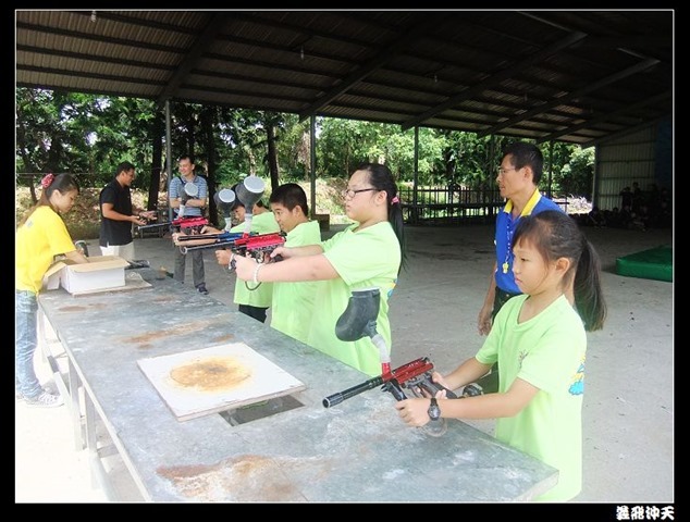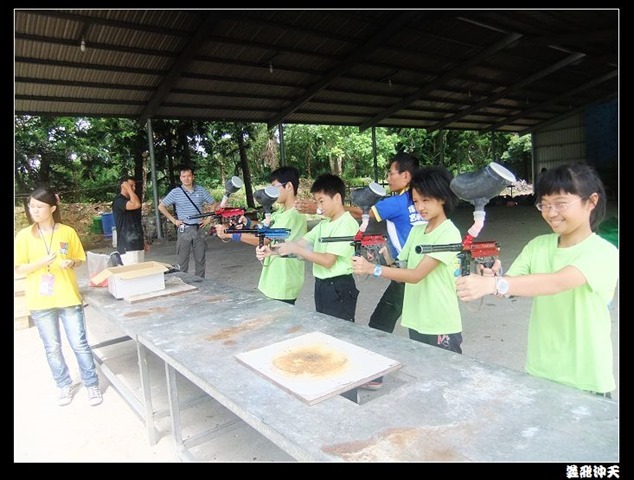 第二關來到小男生們都愛不釋手的槍戰~漆彈射擊,在分站教官有趣的說明後,準備再度上戰場囉!