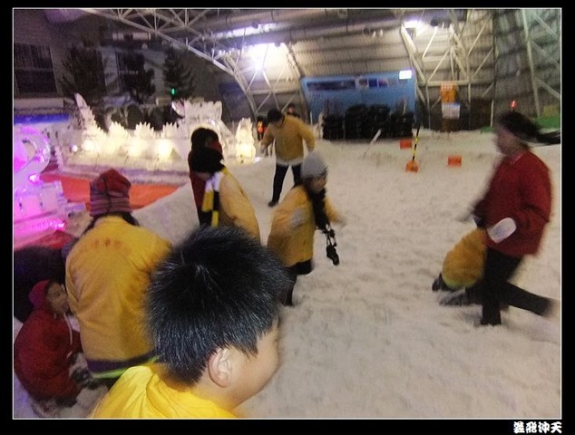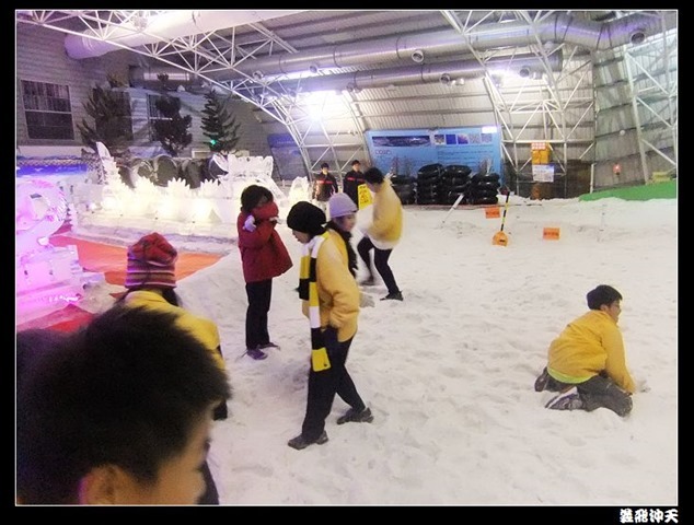 體驗完人肉旋轉壽司後,就是打雪仗、堆雪人的時間了,看到這成堆的人造雪,大家都玩得不亦樂乎!也趕緊抓住這短暫的時間來拍些照當作是永恆的回憶吧!