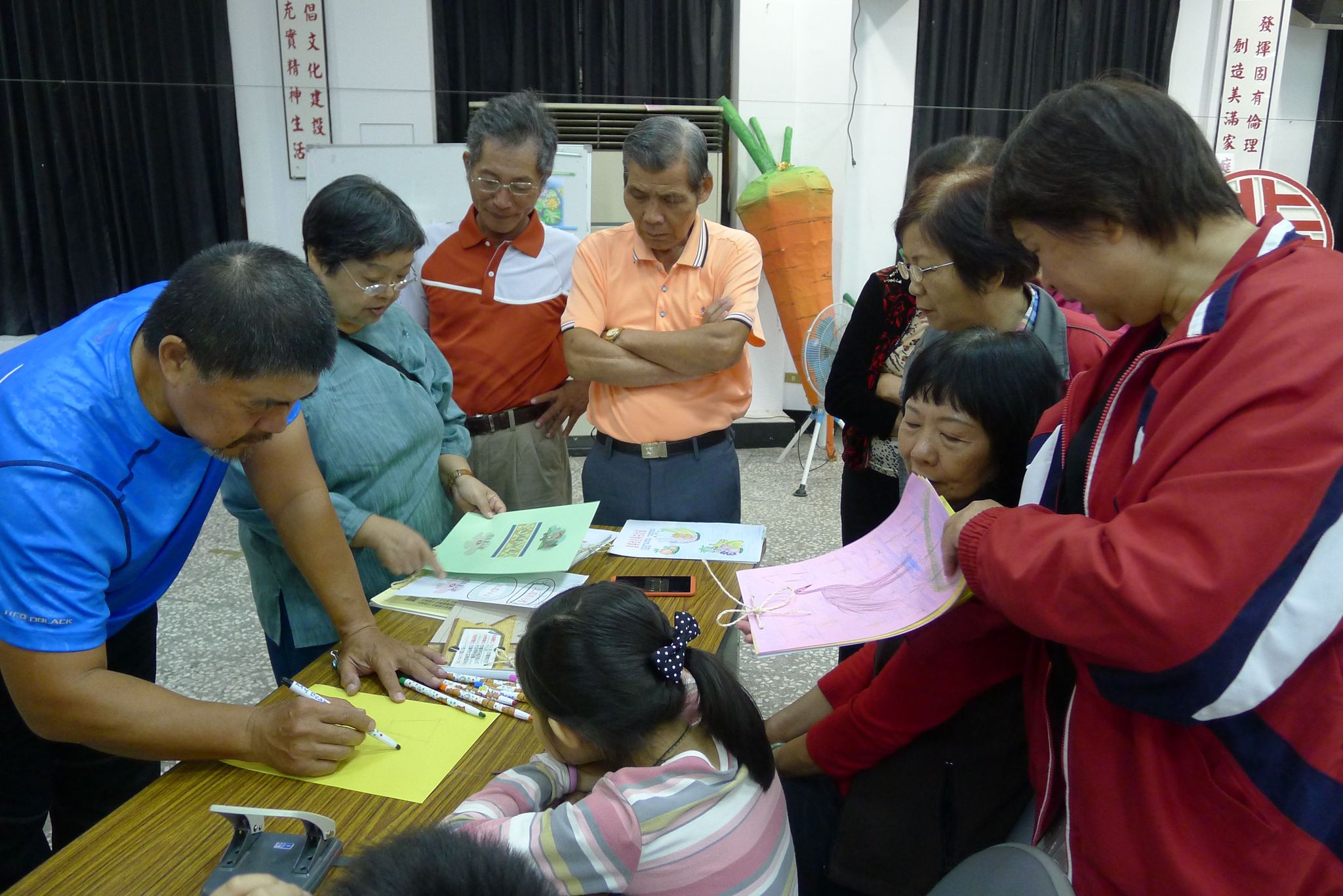 參與的學員年紀最小的是九歲,最大的是八十六歲,面對如此大的背景差異,陳文吉表示,畫畫是沒有壓力、很輕鬆的事,盡量引導學員自己發揮,便是社區繪本的教育功能。
