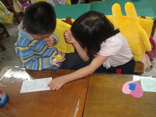 猜猜看,有多少!作者:洪玉婷2012 年 10 月 26 日2021 年 3 月 18 日利用教室裡的玩具花片,我們來「猜猜看」的遊戲吧![@more@]先把花片藏在背後,決定好要讓人猜的題目。打開其中一隻手,數一數有多少花片。你猜得到另外一隻手上有多少花片嗎??唉呀!!不行了!!趕快跟老師求救吧!!作者: 洪玉婷育才國小99.100學年度二忠-我們這一班檢視更多文章