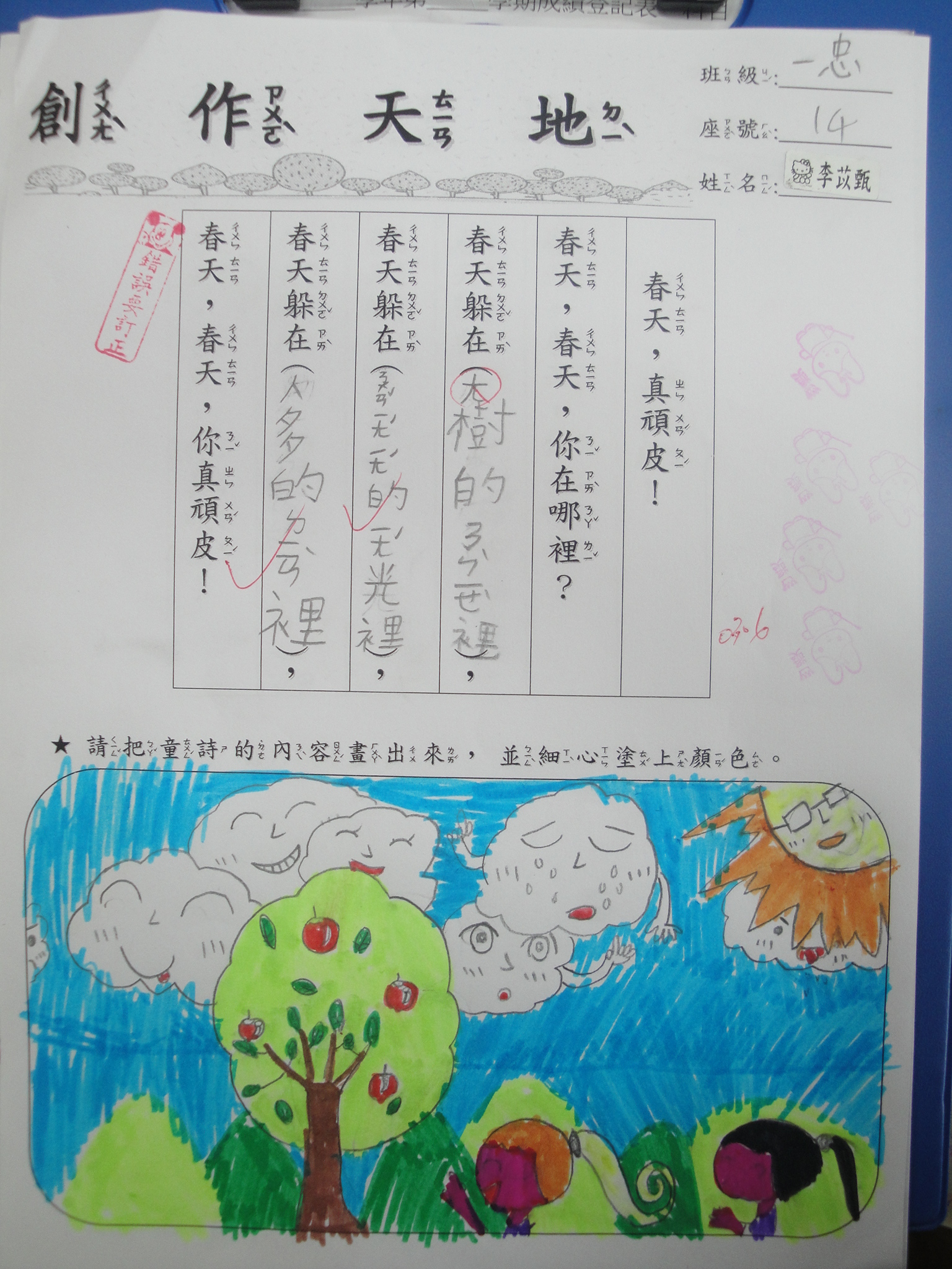最後,我們都完成了一首小詩「春天,真頑皮!」