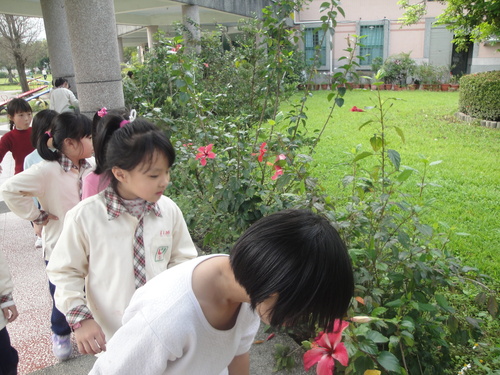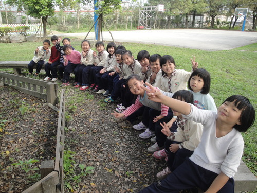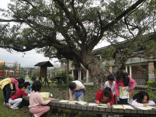 大家圍繞著學校裡最老的榕樹,感受一下春天的氣氛。