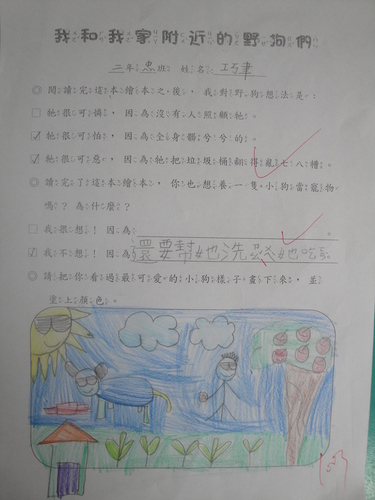 生命教育活動–我和我家附近的野狗們作者:洪玉婷2013 年 10 月 29 日2021 年 3 月 18 日你對野狗有什麼樣的感覺呢?害怕、可憐、還是討厭呢?今天透過這本繪本「我和我家附近的野狗們」,一起來討論一下「野狗」吧!![@more@]曉君老師正講故事給我們聽呢!聽完了故事,你覺得自己適合養狗嗎??我覺得…試著把自己的想法寫下來!更多照片~~~生命教育作者: 洪玉婷育才國小99.100學年度二忠-我們這一班檢視更多文章