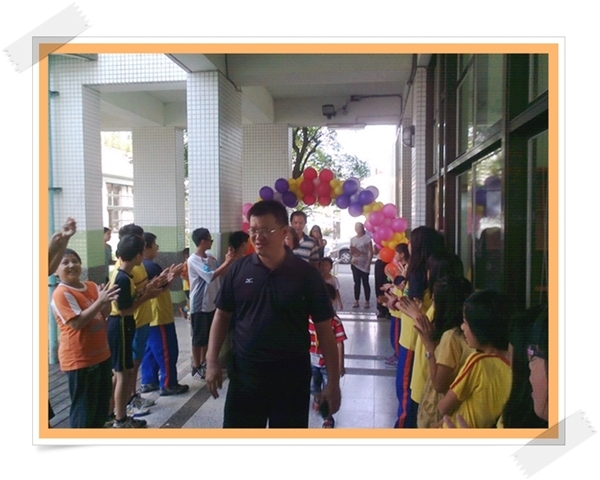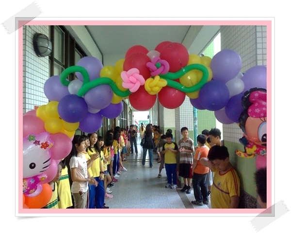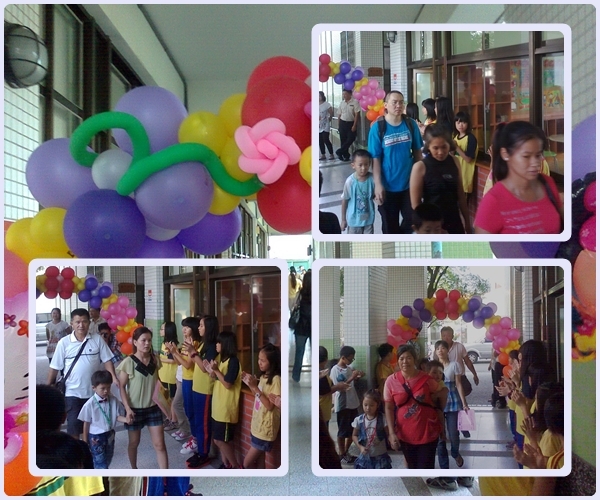 哇!今天是什麼日子呢?大家笑瞇瞇的笑開懷,好一個歡欣鼓舞的氣氛,還張燈結綵喜洋洋呢!….喔!…應該是列隊歡迎拉炮結氣球,好一個現代化的喜洋洋。