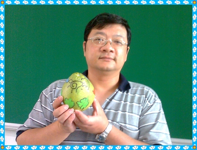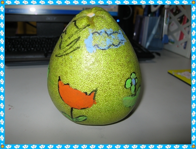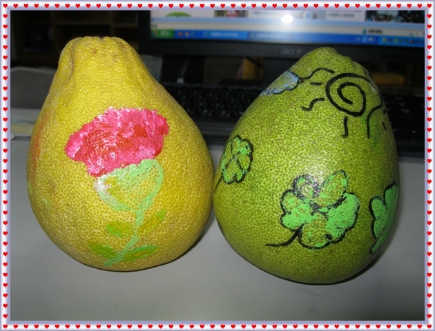 剛好桌上還有一顆柚子,也請最有創意的「芷怡」一起彩繪,讓這兩顆柚子能美麗的成雙成對。
