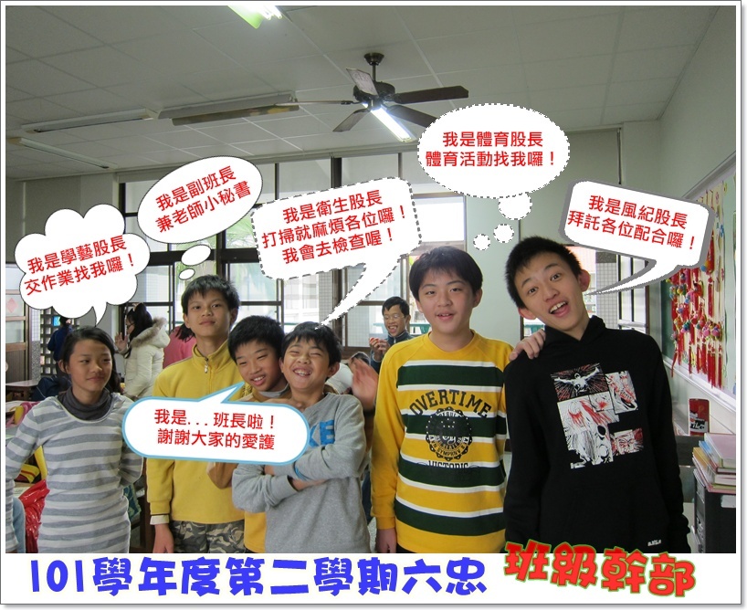 開學第一天,我們就選出了這學期為大家服務的幹部,希望各位同學也配合幹部為班上服務。