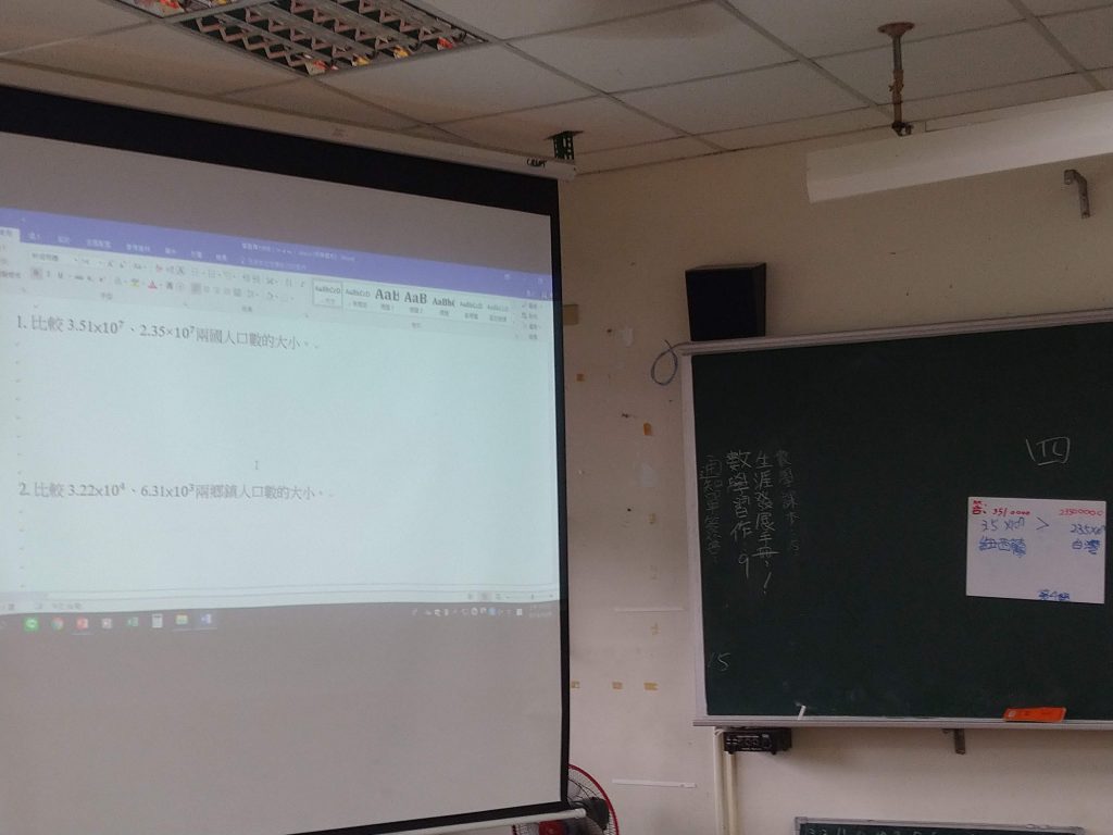 ★雖然學習單上已經有題目,但投影幕上的字太小,沒有效果。除了放大畫面之外,也可以將題目直接抄在黑板上。