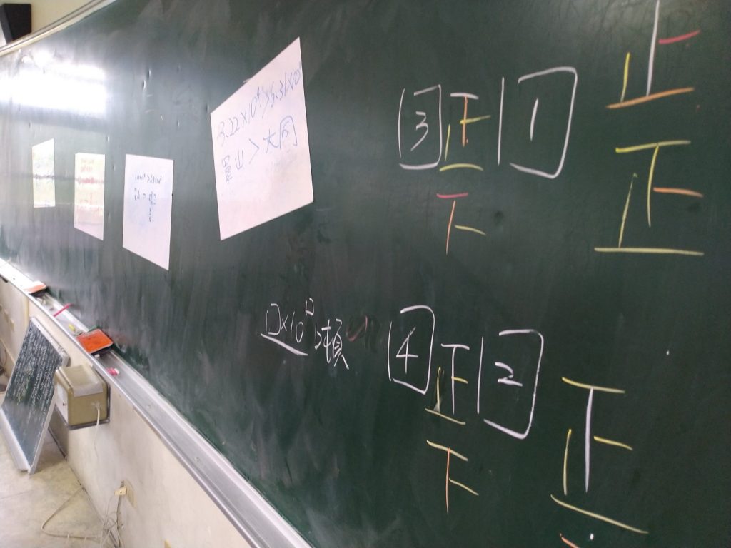 先簡單說課,由於接近段考,考試進度大致結束,課程內容就設定為科學記號的復習,一節課分三階段,先復習科學記號的表示方法,再讓同學以科學記號表示生活上的數,最後再讓學生比較科學記號之間的大小關係。以下我概述這堂試教課的實際觀察 (以符號 ◎ 代表),並提出我的建議 (★) 以供參考。