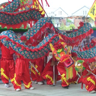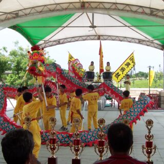 95年4月8日 本校舞龍舞獅隊應邀至傳統藝術中心表演,參與「童心百老匯之百人傳藝大匯演」活動,地點設於文昌祠前之廣場,太...