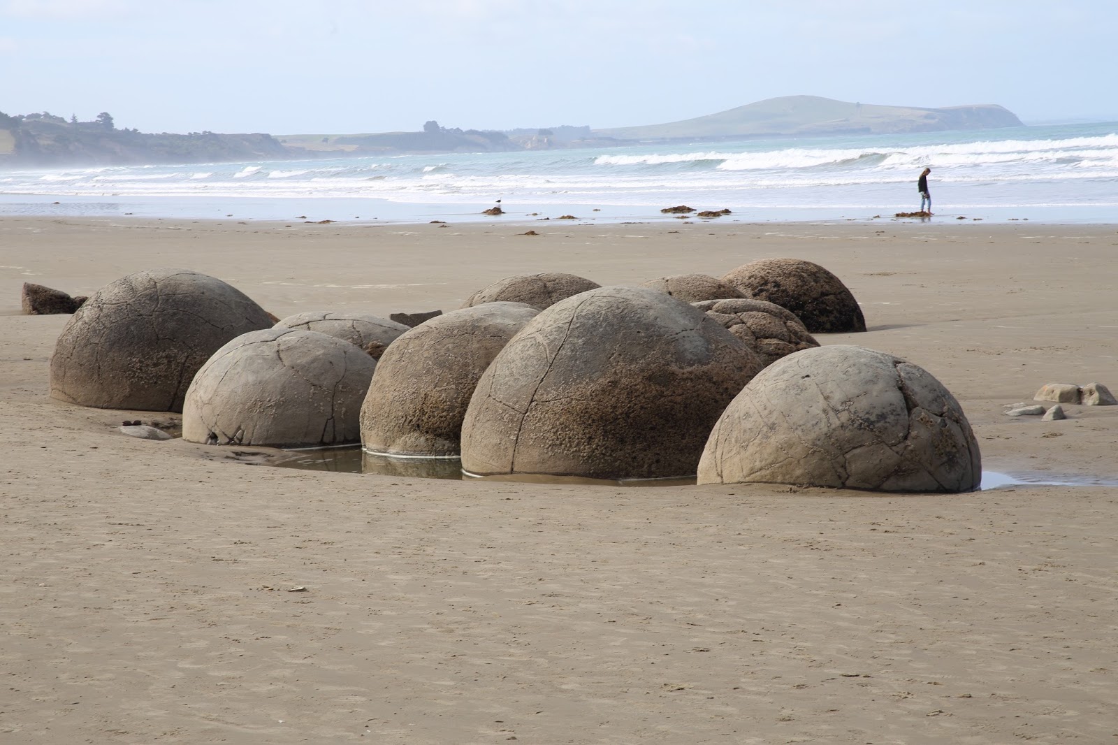 離開但尼丁,往oamaru前進,中間我們下去看恐龍蛋,早上去時是漲潮只有少數一些巨圓石可以碰到,所以我們決定下午再來一次,反正這趟路只要30分,第一次來時不懂,走觀光客的停車場,走好遠,第二次就直接從咖啡廳走下來,不過他有立牌子,過路費5元,只是都沒人丟,應該是人太多,管不了,就算了。