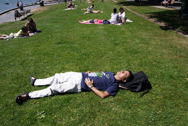 週末很多人都在做日光浴,真的,溫哥華不晒會冷的︿︿,眼睛順便吃吃冰棋淋也不錯>/////< |