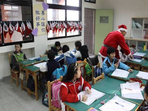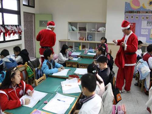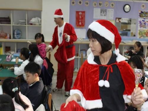 一年一度的聖誕佳節,又來臨了,一早,校長就和基金會李孟潔董事長以及家長會長吳憲權先生來到班上發放糖果,他們的蒞臨,讓孩子們十分開心,為一天的慶祝活動展開序幕,難得一次看到三位聖誕老公公,又能拿到糖果,真的很感謝學校的用心,而且連老師也收到一支拐杖糖,真的很不錯喔!