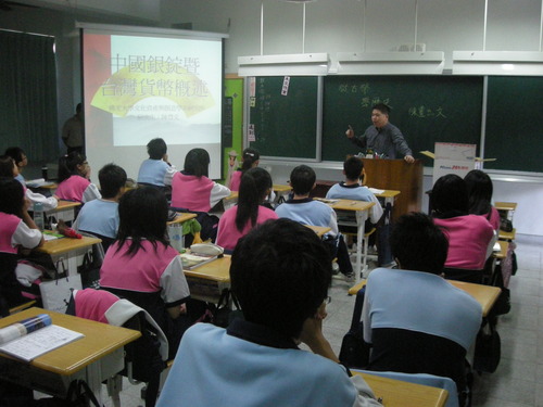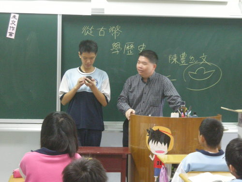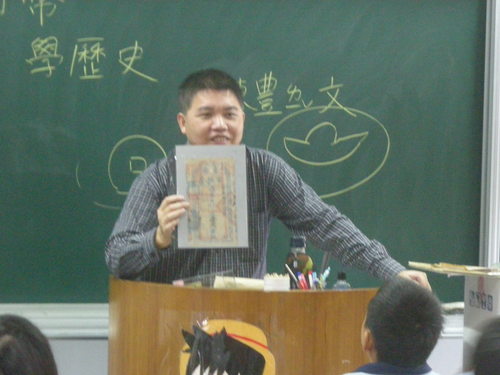 上週四特別邀請到佛光大學文資所碩士生陳豊文先生到校,分享他的精美收藏品:銀錠和古幣。